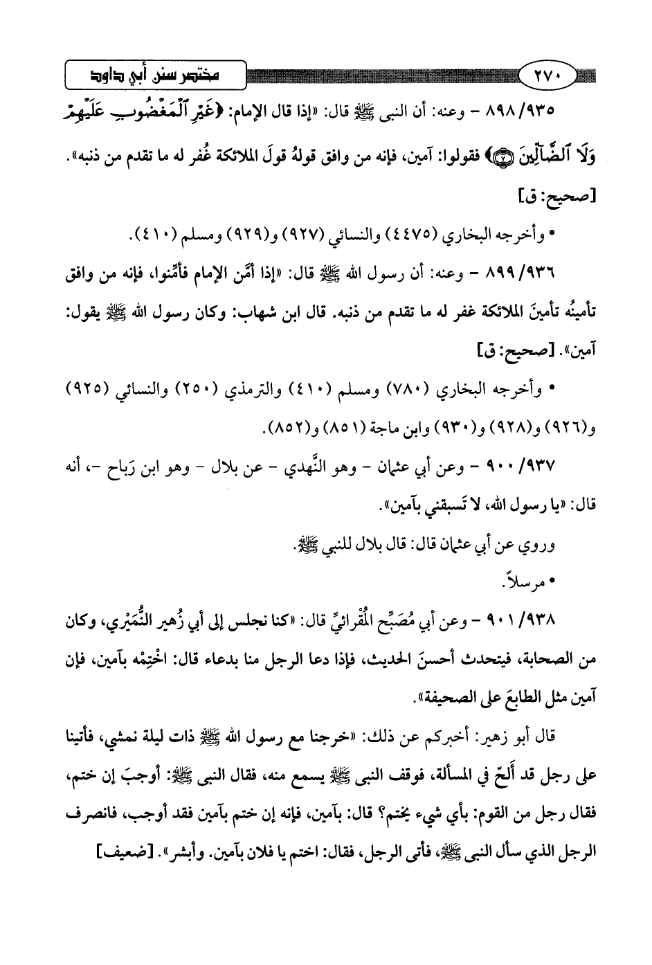937/ 900 - وعن أبي عثمان -وهو النَّهدي- عن بلال -وهو ابن رَباح-، أنه قال: "يا رسول اللَّه، لا تَسبقني بآمين".