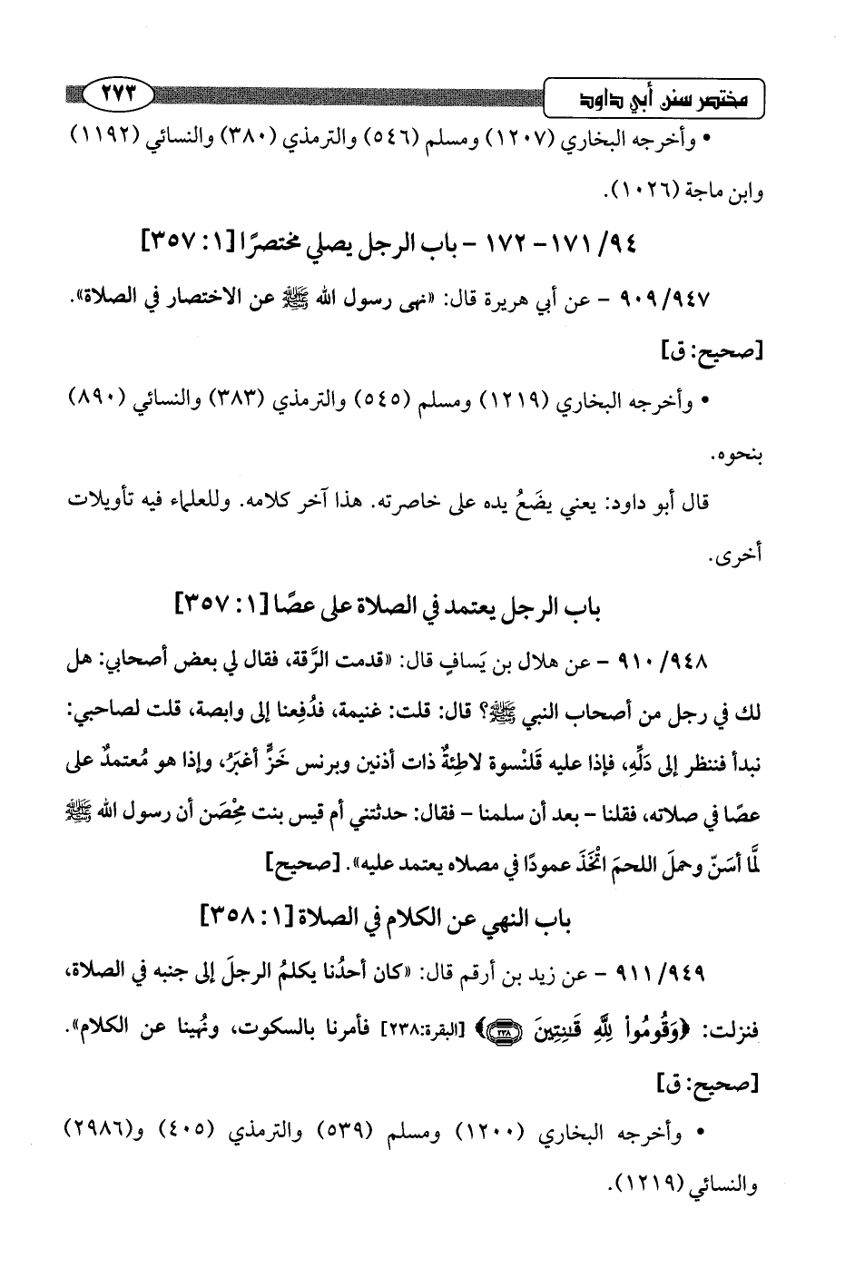94/ 171 - 172 - باب الرجل يصلي مختصرًا [1: 357]