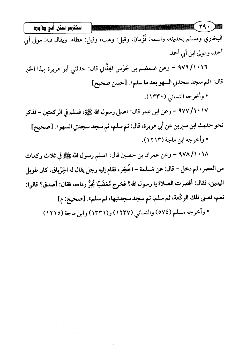 1016/ 976 - وعن ضمضم بن جَوْس الهِفَّاني قال: حدثني أبو هريرة بهذا الخبر قال: "ثم سجد سجدتي السهو بعد ما سلم".hحسن صحيح]