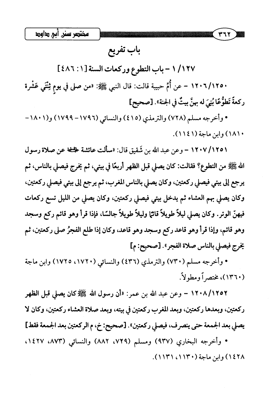 127/ 1 - باب التطوع وركعات السنة [1: 486]