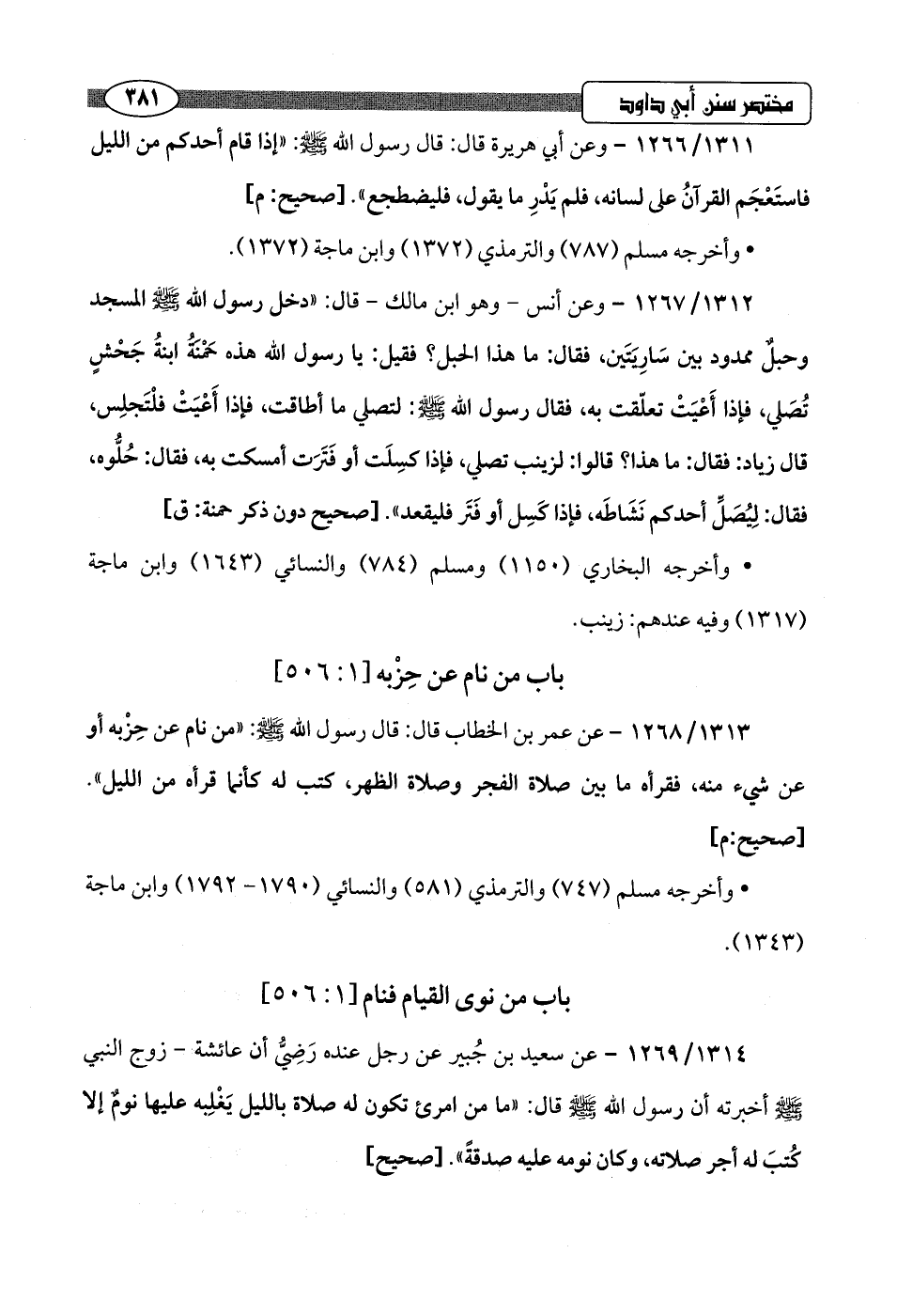 باب من نام عن حِزْبه [1: 506]