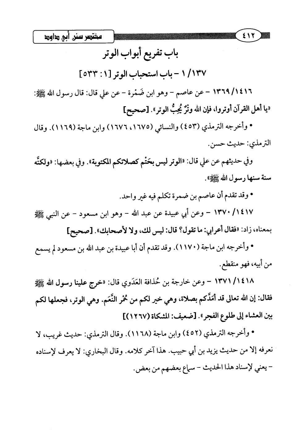 137/ 1 - باب استحباب الوتر [1: 533]