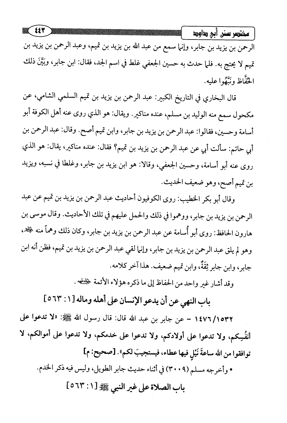 باب النهي عن أن يدعو الإنسان على أهله وماله [1: 563]