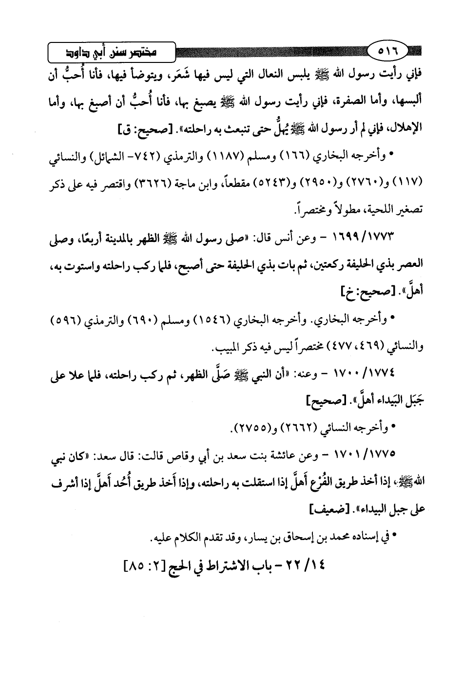 1774/ 1700 - وعنه: "أن النبي -صلى اللَّه عليه وسلم- صَلَّى الظهر، ثم ركب راحلته، فلما علا على جَبَل البَيداء أهلَّ".hصحيح]