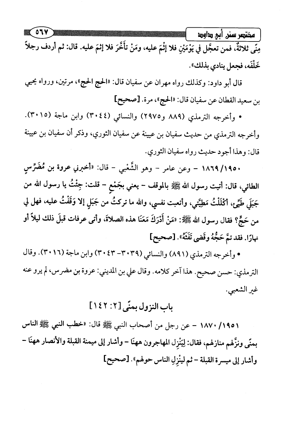 قال أبو داود: وكذلك رواه مهران عن سفيان قال: "الحج الحج"، مرتين، ورواه يحيي بن سعيد القطان عن سفيان قال: "الحج"، مرَّة.hصحيح]