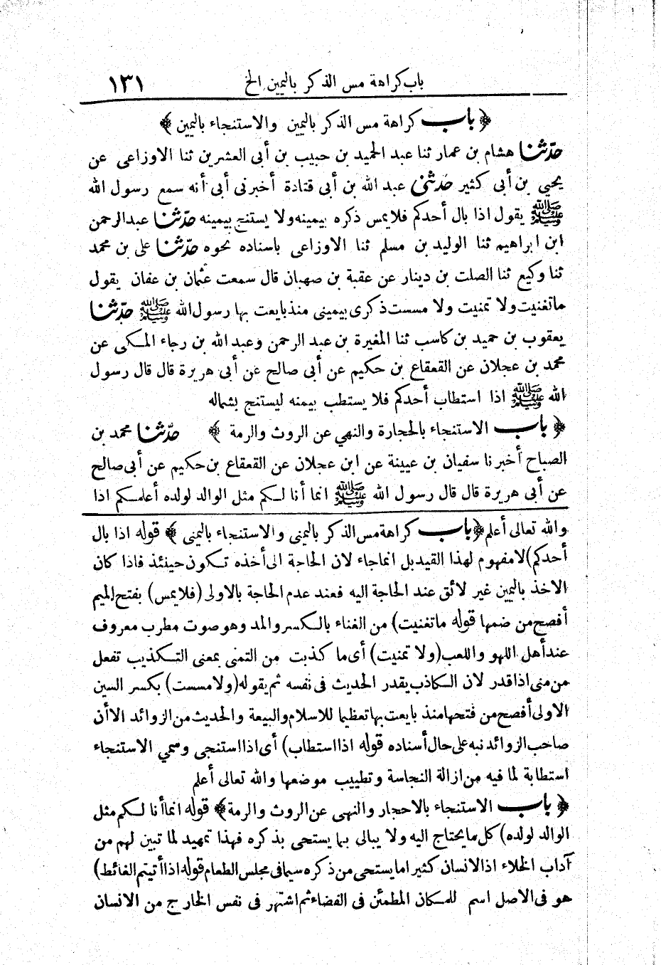 [بَاب كَرَاهِيَةِ مَسِّ الذَّكَرِ بِالْيَمِينِ وَالِاسْتِنْجَاءِ بِالْيَمِينِ]