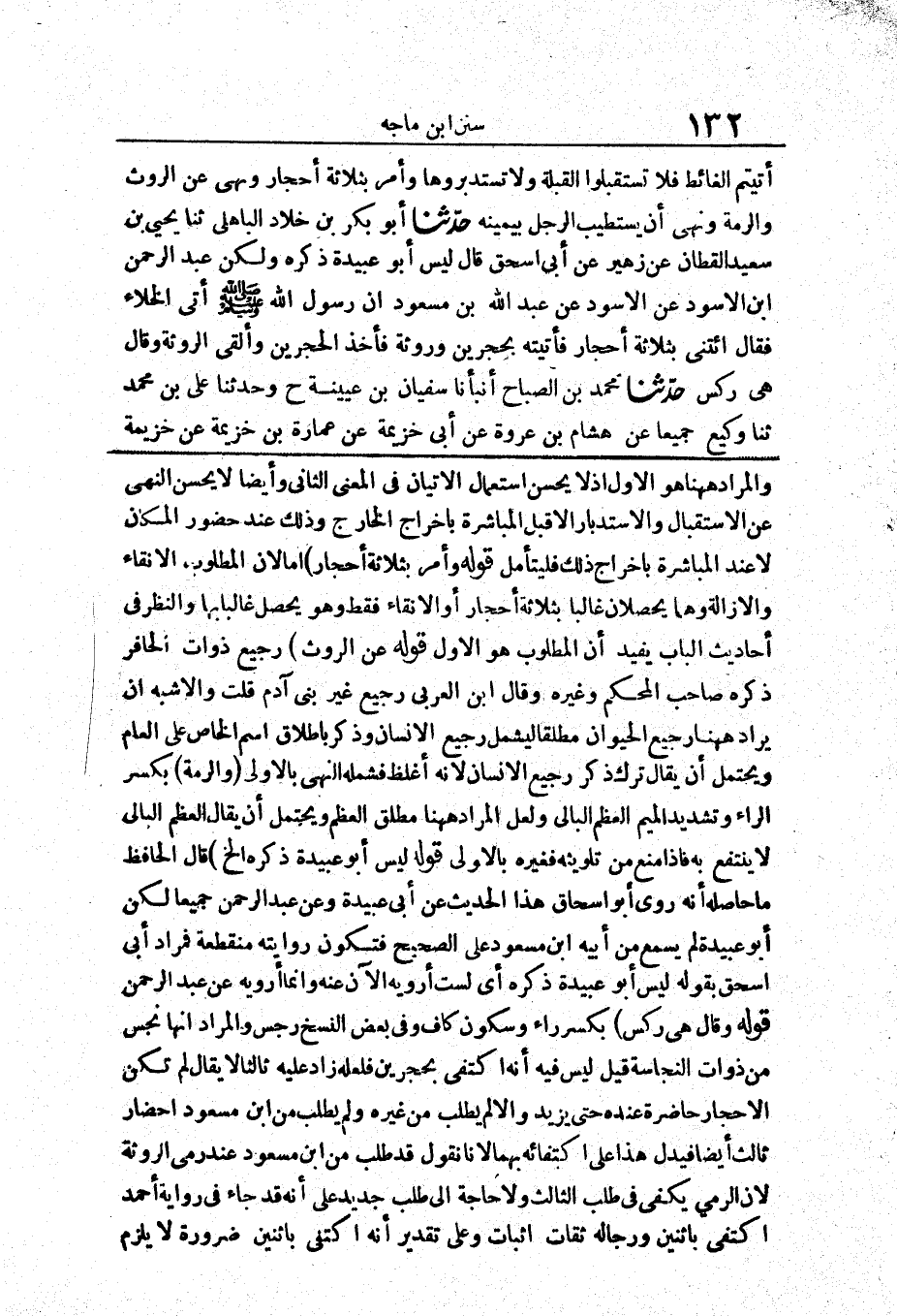 قَوْلُهُ (لَيْسَ أَبُو عُبَيْدَةَ ذَكَرَهُ إِلَخْ) قَالَ الْحَافِظُ مَا حَاصِلُهُ إِنَّهُ رَوَى أَبُو إِسْحَاقَ هَذَا الْحَدِيثَ عَنْ أَبِيَ عُبَيْدَةَ وَعَنْ عَبْدِ الرَّحْمَنِ جَمِيعًا لَكِنَّ أَبَا عُبَيْدَةَ لَمْ يَسْمَعْ مِنْ أَبِيهِ ابْنِ مَسْعُودٍ عَلَى الصَّحِيحِ فَتَكُونُ رِوَايَتُهُ مُنْقَطِعَةً فَمُرَادُ أَبِي إِسْحَاقَ بِقَوْلِهِ لَيْسَ أَبُو عُبَيْدَةَ ذَكَرَهُ أَيْ لَسْتُ أَرْوِيهِ الْآنَ عَنْهُ وَإِنَّمَا أَرْوِيهِ عَنْ عَبْدِ الرَّحْمَنِ قَوْلُهُ (وَقَالَ هِيَ رِكْسٌ) بِكَسْرِ رَاءٍ وَسُكُونِ كَافٍ وَفِي بَعْضِ النُّسَخِ رِجْسٌ وَالْمُرَادُ أَنَّهَا نَجَسٌ مِنْ ذَوَاتِ النَّجَاسَةِ قِيلَ لَيْسَ فِيهِ أَنَّهُ اكْتَفَى بِحَجَرَيْنِ فَلَعَلَّهُ زَادَ عَلَيْهِ ثَالِثًا لَا يُقَالُ لَمْ تَكُنِ الْأَحْجَارُ حَاضِرَةً عِنْدَهُ حَتَّى يَزِيدَ وَإِلَّا لَمْ يَطْلُبْ مِنْ غَيْرِهِ وَلَمْ يَطْلُبْ مِنَ ابْنِ مَسْعُودٍ إِحْضَارَ ثَالِثٍ أَيْضًا فَيَدُلُّ هَذَا عَلَى اكْتِفَائِهِ بِهِمَا لِأَنَّا نَقُولُ قَدْ طَلَبَ مِنَ ابْنِ مَسْعُودٍ عِنْدَ رَمْيِ الرَّوْثَةِ لِأَنَّ الرَّمْيَ يَكْفِي فِي طَلَبِ الثَّالِثِ وَلَا حَاجَةَ إِلَى طَلَبٍ جَدِيدٍ عَلَى أَنَّهُ قَدْ جَاءَ فِي رِوَايَةِ أَحْمَدَ اكْتَفَى بِاثْنَيْنِ وَرِجَالُهُ ثِقَاتٌ أَثَبَاتٌ وَعَلَى تَقْدِيرِ أَنَّهُ اكْتَفَى بِاثْنَيْنِ ضَرُورَةٌ لَا يَلْزَمُ
