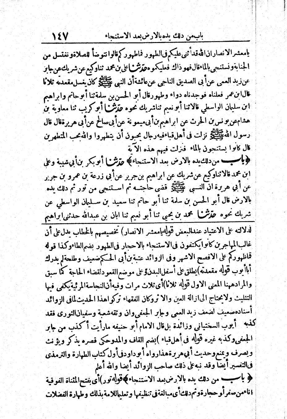 [بَاب مَنْ دَلَكَ يَدَهُ بِالْأَرْضِ بَعْدَ الِاسْتِنْجَاءِ]
