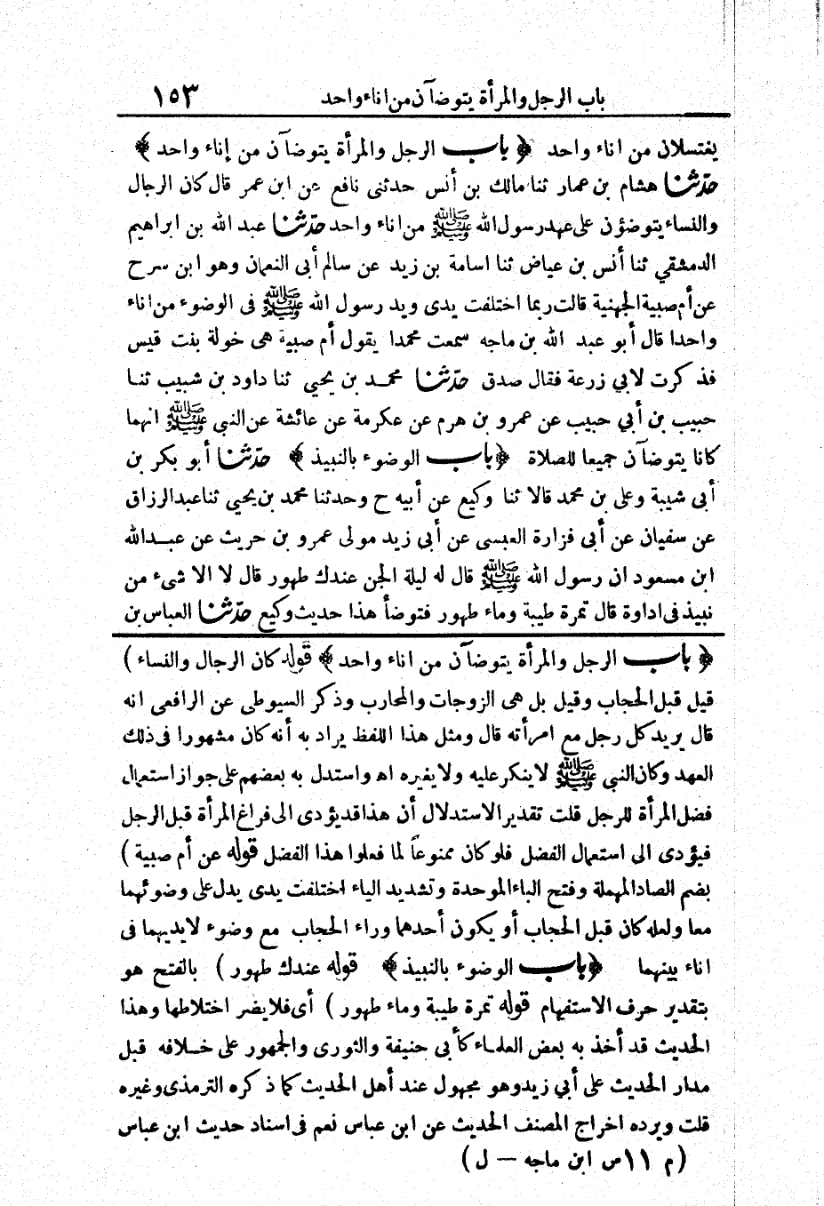 381 - حَدَّثَنَا هِشَامُ بْنُ عَمَّارٍ حَدَّثَنَا مَالِكُ بْنُ أَنَسٍ حَدَّثَنِي نَافِعٌ عَنْ ابْنِ عُمَرَ قَالَ «كَانَ الرِّجَالُ وَالنِّسَاءُ يَتَوَضَّئُونَ عَلَى عَهْدِ رَسُولِ اللَّهِ صَلَّى اللَّهُ عَلَيْهِ وَسَلَّمَ مِنْ إِنَاءٍ وَاحِدٍ»