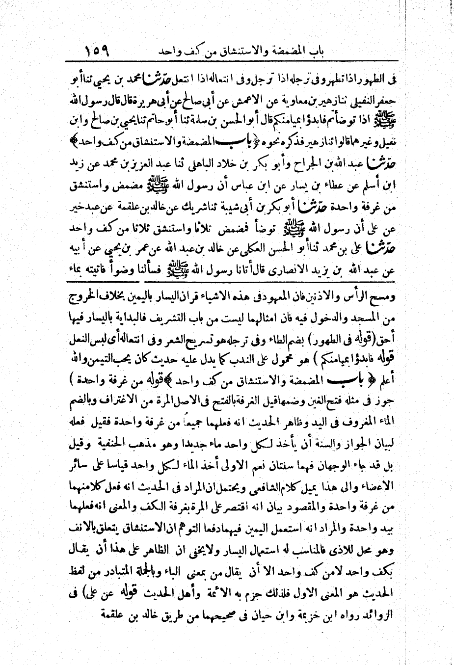 403 - حَدَّثَنَا عَبْدُ اللَّهِ بْنُ الْجَرَّاحِ وَأَبُو بَكْرِ بْنُ خَلَّادٍ الْبَاهِلِيُّ حَدَّثَنَا عَبْدُ الْعَزِيزِ بْنُ مُحَمَّدٍ عَنْ زَيْدِ بْنِ أَسْلَمَ عَنْ عَطَاءِ بْنِ يَسَارٍ عَنْ ابْنِ عَبَّاسٍ «أَنَّ رَسُولَ اللَّهِ صَلَّى اللَّهُ عَلَيْهِ وَسَلَّمَ مَضْمَضَ وَاسْتَنْشَقَ مِنْ غُرْفَةٍ وَاحِدَةٍ»