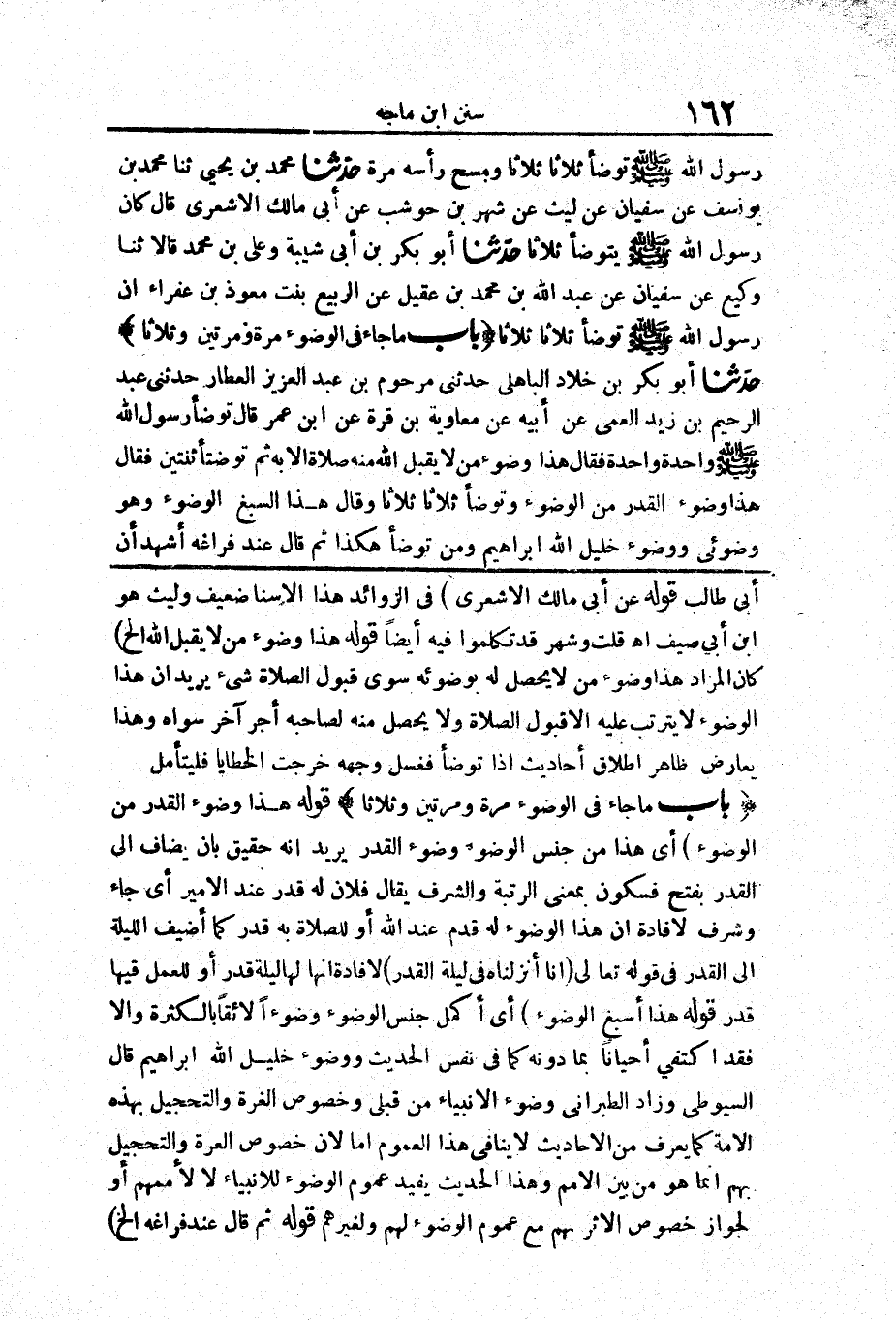 قَوْلُهُ (هَذَا وُضُوءُ مَنْ لَا يَقْبَلُ اللَّهُ إِلَخْ) كَانَ الْمُرَادُ هَذَا وُضُوءُ مَنْ لَا يَحْصُلُ لَهُ بِوُضُوئِهِ سِوَى قَبُولِ الصَّلَاةِ شَيْءٌ يُرِيدُ أَنَّ هَذَا الْوُضُوءَ لَا يَتَرَتَّبُ عَلَيْهِ إِلَّا قَبُولُ الصَّلَاةِ وَلَا يَحْصُلُ مِنْهُ لِصَاحِبِهِ أَجْرٌ آخَرُ سِوَاهُ وَهَذَا يُعَارِضُ ظَاهِرَ إِطْلَاقِ أَحَادِيثَ «إِذَا تَوَضَّأَ فَغَسَلَ وَجْهَهُ خَرَجَتِ الْخَطَايَا» فَلْيُتَأَمَّلْ قَوْلُهُ (هَذَا وُضُوءُ الْقَدْرِ مِنَ الْوُضُوءِ) أَيْ هَذَا مِنْ جِنْسِ الْوُضُوءِ وُضُوءُ الْقَدْرِ يُرِيدُ أَنَّهُ حَقِيقٌ بِأَنْ يُضَافَ إِلَى الْقَدْرِ بِفَتْحٍ فَسُكُونٍ بِمَعْنَى الرُّتْبَةِ وَالشَّرَفِ يُقَالُ فُلَانٌ لَهُ قَدْرٌ عِنْدَ الْأَمِيرِ أَيْ جَاهٌ وَشَرَفٌ لِإِفَادَةِ أَنَّ هَذَا الْوُضُوءَ لَهُ قَدَمٌ عِنْدَ اللَّهِ أَوْ لِلصَّلَاةِ بِهِ قَدْرٌ كَمَا أُضِيفَتِ اللَّيْلَةُ إِلَى الْقَدْرِ فِي قَوْلِهِ تَعَالَى {إِنَّا أَنْزَلْنَاهُ فِي لَيْلَةِ الْقَدْرِ} [القدر: 1] لِإِفَادَةِ أَنَّهَا لَهَا لَيْلَةُ قَدْرٍ أَوْ لِلْعَمَلِ فِيهَا قَدْرٌ قَوْلُهُ (هَذَا أَسْبَغُ الْوُضُوءِ) أَيْ أَكْمَلُ جِنْسِ الْوُضُوءِ وُضُوءًا لَائِقًا بِالْكَثْرَةِ وَإِلَّا فَقَدِ اكْتَفَى أَحْيَانًا بِمَا دُونَهَ كَمَا فِي نَفْسِ الْحَدِيثِ وَوُضُوءُ خَلِيلِ اللَّهِ إِبْرَاهِيمَ قَالَ السُّيُوطِيُّ وَزَادَ الطَّبَرَانِيُّ وُضُوءُ الْأَنْبِيَاءِ مِنْ قَبْلِي وَخُصُوصُ الْغُرَّةِ وَالتَّحْجِيلِ بِهَذِهِ الْأُمَّةِ كَمَا يُعْرَفُ مِنَ الْأَحَادِيثِ لَا يُنَافِي هَذَا الْعُمُومَ إِمَّا لِأَنَّ خُصُوصَ الْغُرَّةِ وَالتَّحْجِيلِ بِهِمْ إِنَّمَا هُوَ مِنْ بَيْنِ الْأُمَمِ وَهَذَا الْحَدِيثُ يُفِيدُ عُمُومَ الْوُضُوءِ لِلْأَنْبِيَاءِ لَا لِأُمَمِهِمْ أَوْ لِجَوَازِ خُصُوصِ الْأَثَرِ بِهِمْ مَعَ عُمُومِ الْوُضُوءِ لَهُمْ وَلِغَيْرِهِمْ قَوْلُهُ (ثُمَّ قَالَ عِنْدَ فَرَاغِهِ إِلَخْ)