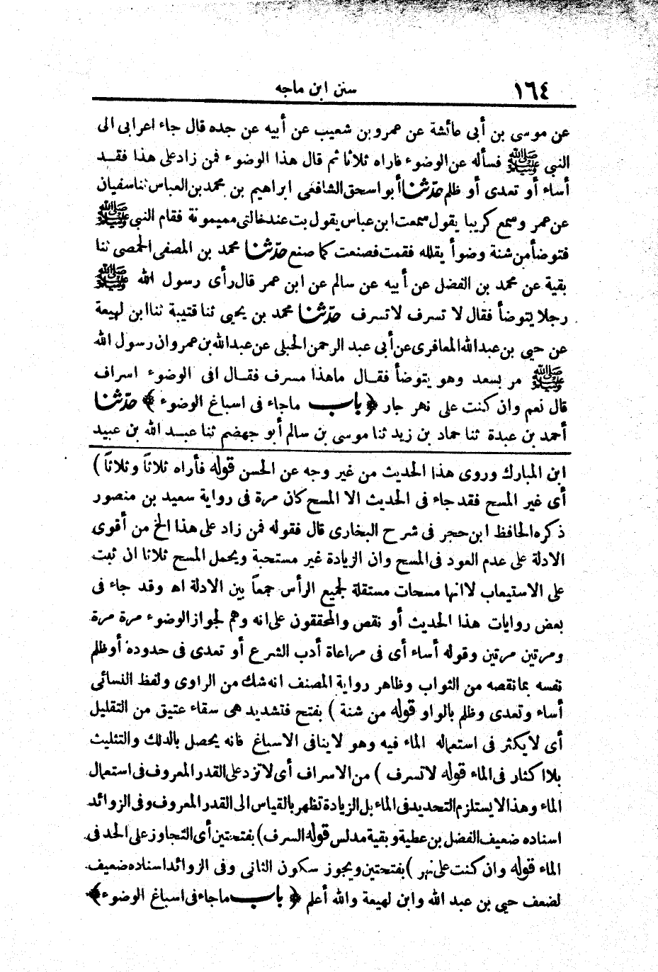 425 - حَدَّثَنَا مُحَمَّدُ بْنُ يَحْيَى حَدَّثَنَا قُتَيْبَةُ حَدَّثَنَا ابْنُ لَهِيعَةَ عَنْ حُيَيِّ بْنِ عَبْدِ اللَّهِ الْمَعَافِرِيِّ عَنْ أَبِي عَبْدِ الرَّحْمَنِ الْحُبُلِيِّ عَنْ عَبْدِ اللَّهِ بْنِ عَمْرٍو «أَنَّ رَسُولَ اللَّهِ صَلَّى اللَّهُ عَلَيْهِ وَسَلَّمَ مَرَّ بِسَعْدٍ وَهُوَ يَتَوَضَّأُ فَقَالَ مَا هَذَا السَّرَفُ فَقَالَ أَفِي الْوُضُوءِ إِسْرَافٌ قَالَ نَعَمْ وَإِنْ كُنْتَ عَلَى نَهَرٍ جَارٍ»