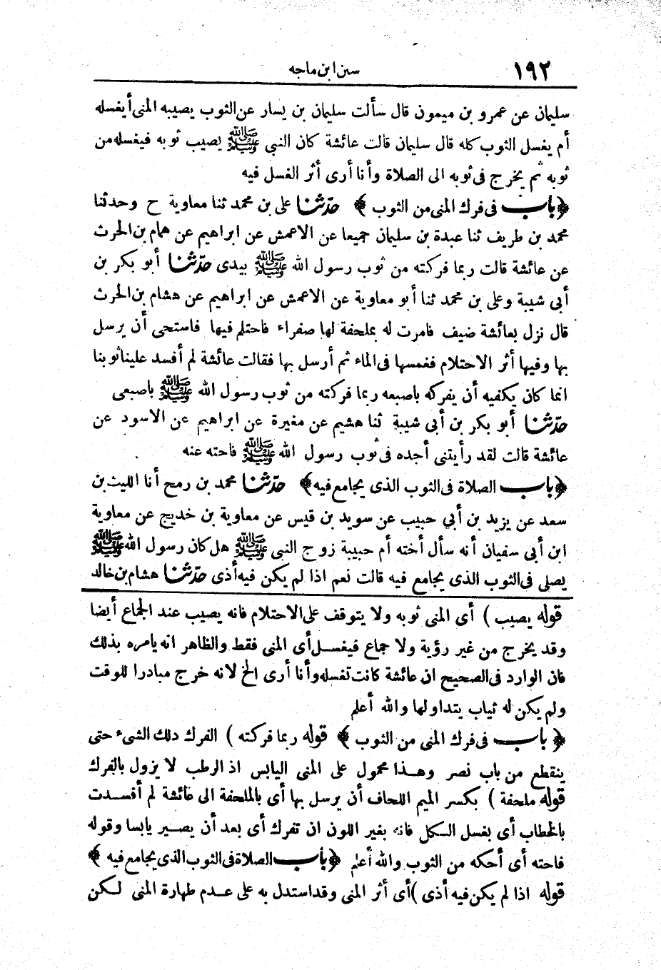 537 - حَدَّثَنَا عَلِيُّ بْنُ مُحَمَّدٍ حَدَّثَنَا أَبُو مُعَاوِيَةَ ح وَحَدَّثَنَا مُحَمَّدُ بْنُ طَرِيفٍ حَدَّثَنَا عَبْدَةُ بْنُ سُلَيْمَانَ جَمِيعًا عَنْ الْأَعْمَشِ عَنْ إِبْرَاهِيمَ عَنْ هَمَّامِ بْنِ الْحَارِثِ عَنْ عَائِشَةَ قَالَتْ «رُبَّمَا فَرَكْتُهُ مِنْ ثَوْبِ رَسُولِ اللَّهِ صَلَّى اللَّهُ عَلَيْهِ وَسَلَّمَ بِيَدِي»