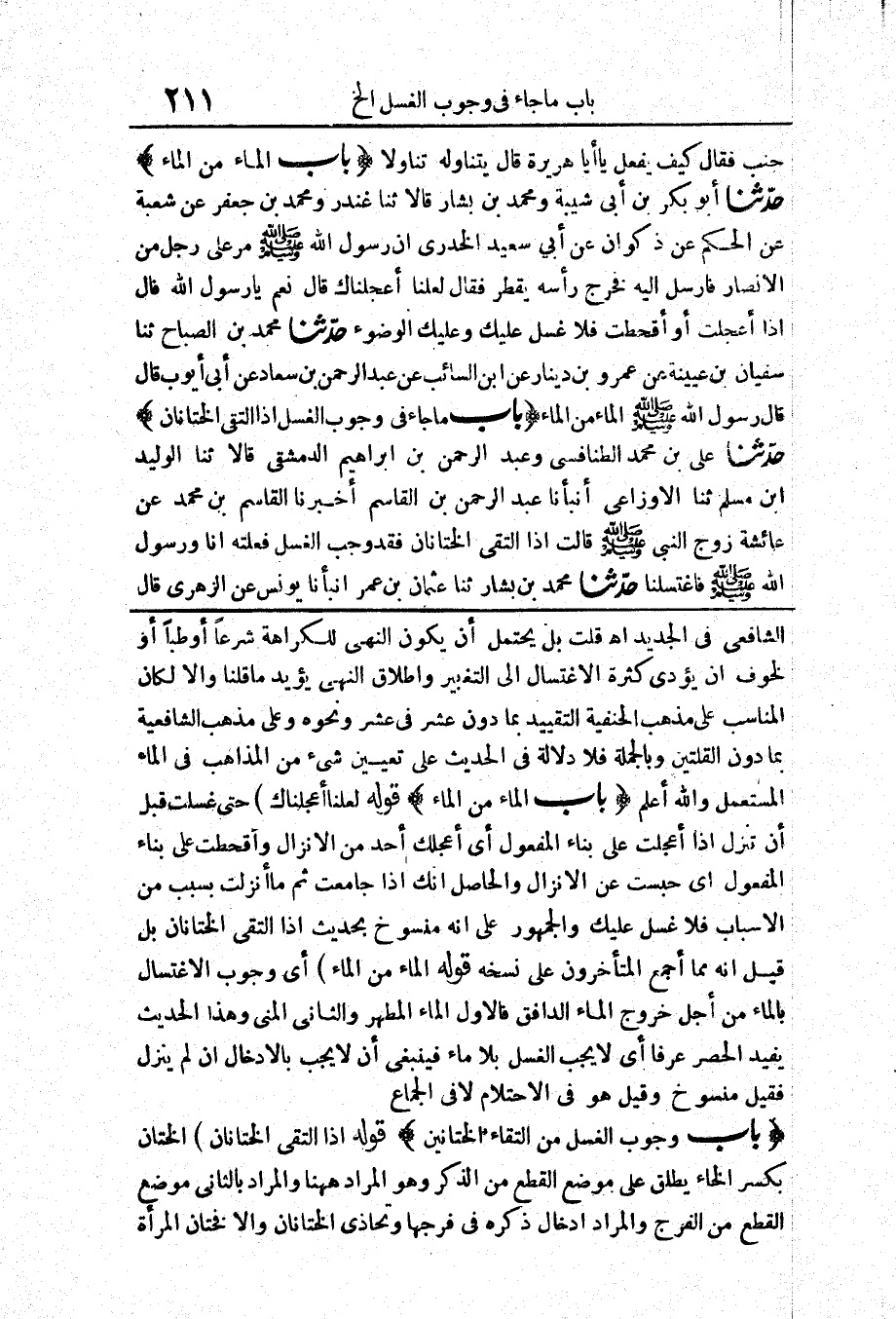 606 - حَدَّثَنَا أَبُو بَكْرِ بْنُ أَبِي شَيْبَةَ وَمُحَمَّدُ بْنُ بَشَّارٍ قَالَا حَدَّثَنَا غُنْدَرٌ مُحَمَّدُ بْنُ جَعْفَرٍ عَنْ شُعْبَةَ عَنْ الْحَكَمِ عَنْ ذَكْوَانَ عَنْ أَبِي سَعِيدٍ الْخُدْرِيِّ «أَنَّ رَسُولَ اللَّهِ صَلَّى اللَّهُ عَلَيْهِ وَسَلَّمَ مَرَّ عَلَى رَجُلٍ مِنْ الْأَنْصَارِ فَأَرْسَلَ إِلَيْهِ فَخَرَجَ رَأْسُهُ يَقْطُرُ فَقَالَ لَعَلَّنَا أَعْجَلْنَاكَ قَالَ نَعَمْ يَا رَسُولَ اللَّهِ قَالَ إِذَا أُعْجِلْتَ أَوْ أُقْحِطْتَ فَلَا غُسْلَ عَلَيْكَ وَعَلَيْكَ الْوُضُوءُ»