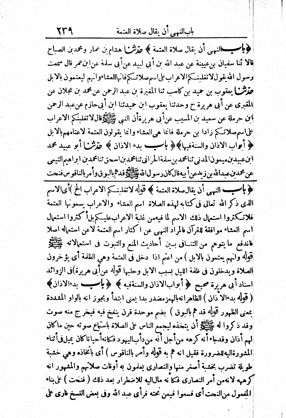قَوْلُهُ (لَا تَغْلِبَنَّكُمُ الْأَعْرَابُ إِلَخْ) أَيِ الِاسْمُ الَّذِي ذَكَرَ اللَّهُ تَعَالَى فِي كِتَابِهِ لِهَذِهِ الصَّلَاةِ اسْمُ الْعِشَاءِ وَالْأَعْرَابُ يُسَمُّونَهَا الْعَتَمَةُ فَلَا تُكْثِرُوا اسْتِعْمَالَ ذَلِكَ الِاسْمِ لِمَا فِيهِ مِنْ غَلَبَةِ الْأَعْرَابِ عَلَيْكُمْ بَلْ أَكْثِرُوا اسْتِعْمَالَ اسْمَ الْعِشَاءِ مُوَافَقَةً لِلْقُرْآنِ فَالْمُرَادُ النَّهْيُ عَنْ إِكْثَارِ اسْمِ الْعَتَمَةِ لَا عَنِ اسْتِعْمَالِهِ أَصْلًا فَانْدَفَعَ مَا يُتَوَهَّمُ مِنَ التَّنَافِي بَيْنَ أَحَادِيثِ الْمَنْعِ وَالثُّبُوتِ فِي اسْتِعْمَالَاتِهِ - صَلَّى اللَّهُ عَلَيْهِ وَسَلَّمَ - قَوْلُهُ (وَإِنَّهُمْ يُعْتِمُونَ بِالْإِبِلِ) مِنْ أَعْتَمَ إِذَا دَخَلَ فِي الْعَتَمَةِ وَهِيَ الظُّلْمَةُ أَيْ يُؤَخِّرُونَ الصَّلَاةَ وَيَدْخُلُونَ فِي ظُلْمَةِ اللَّيْلِ بِسَبَبِ الْإِبِلِ وَحَلْبِهَا.