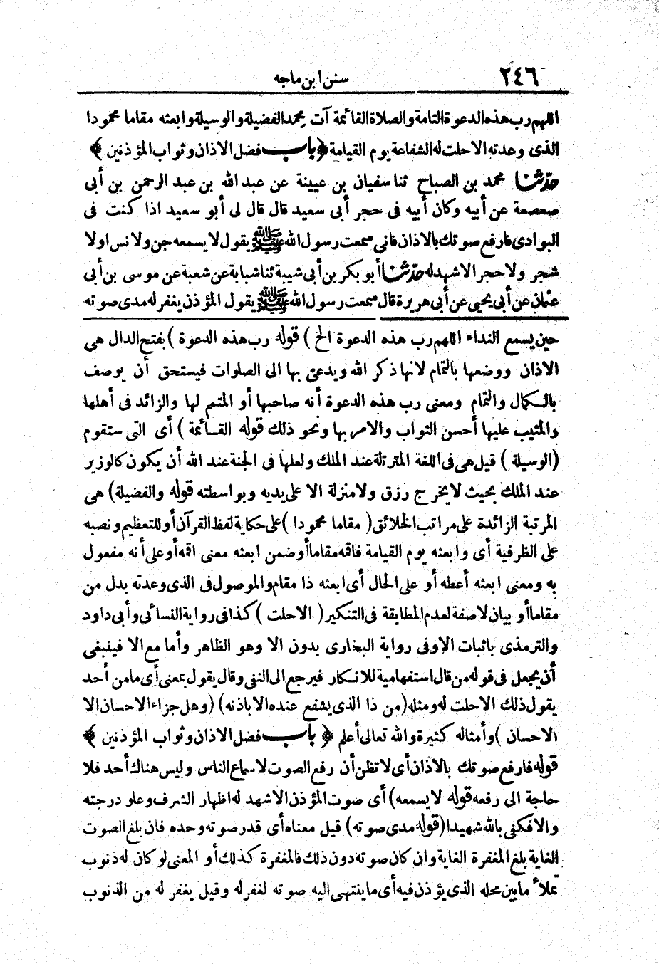 قَوْلُهُ (رَبَّ هَذِهِ الدَّعْوَةِ) بِفَتْحِ الدَّالِ هِيَ الْأَذَانُ وَوَضَعَهَا بِالتَّمَامِ لِأَنَّهَا ذِكْرُ اللَّهِ وَيُدْعَى بِهَا إِلَى الصَّلَوَاتِ فَيَسْتَحِقُّ أَنْ يُوصَفَ بِالْكَمَالِ وَالتَّمَامِ وَمَعْنَى رَبَّ هَذِهِ الدَّعْوَةِ أَنَّهُ صَاحِبُهَا أَوِ الْمُتَمِّمُ لَهَا وَالزَّائِدُ فِي أَهْلِهَا وَالْمُثِيبُ عَلَيْهَا أَحْسَنَ الثَّوَابَ وَالْأَمْرَ بِهَا وَنَحْوَ ذَلِكَ قَوْلُهُ (الْقَائِمَةِ) أَيِ الَّتِي سَتَقُومُ (الْوَسِيلَةَ) قِيلَ هِيَ فِي اللُّغَةِ الْمُتَرَتِّلَةُ عِنْدَ الْمَلِكِ وَلَعَلَّهَا فِي الْجَنَّةِ عِنْدَ اللَّهِ أَنْ يَكُونَ كَالْوَزِيرِ عِنْدَ الْمَلِكِ بِحَيْثُ لَا يَخْرُجُ رِزْقٌ وَلَا مَنْزِلَةٌ إِلَّا عَلَى يَدَيْهِ وَبِوَاسِطَتِهِ قَوْلُهُ (وَالْفَضِيلَةُ) هِيَ الْمَرْتَبَةُ الزَّائِدَةُ عَلَى مَرَاتِبِ الْخَلَائِقِ (مَقَامًا مَحْمُودًا) عَلَى حِكَايَةِ لَفْظِ الْقُرْآنِ أَوْ لِلتَّعْظِيمِ وَنَصَبَهُ عَلَى الظَّرْفِيَّةِ أَيْ وَابْعَثْهُ يَوْمَ الْقِيَامَةِ فَأَقِمْهُ مَقَامًا أَوْ ضَمَّنَ ابْعَثْهُ مَعْنَى أَقِمْهُ أَوْ عَلَى أَنَّهُ مَفْعُولٌ بِهِ وَمَعْنَى ابْعَثْهُ أَعْطِهِ أَوْ عَلَى الْحَالِ أَيِ ابْعَثْهُ ذَا مَقَامٍ وَالْمَوْصُولُ فِي الَّذِي وَعَدْتَهُ بَدَلٌ مِنْ " مَقَامًا " أَوْ بَيَانٌ لَا صِفَةٌ لِعَدَمِ الْمُطَابَقَةِ فِي التَّنْكِيرِ (إِلَّا حَلَّتْ) كَذَا فِي رِوَايَةِ النَّسَائِيِّ وَأَبِي دَاوُدَ وَالتِّرْمِذِيِّ بِإِثْبَاتِ إِلَّا وَفِي رِوَايَةِ الْبُخَارِيِّ بِدُونِ إِلَّا وَهُوَ الظَّاهِرُ وَأَمَّا مَعَ إِلَّا فَيَنْبَغِي أَنْ يُجْعَلَ فِي قَوْلِهِ مَنْ قَالَ اسْتِفْهَامِيَّةٌ لِلْإِنْكَارِ فَيَرْجِعُ إِلَى النَّفْيِ وَقَالَ يَقُولُ بِمَعْنَى أَيْ مَا مِنْ أَحَدٍ يَقُولُ ذَلِكَ إِلَّا حَلَّتْ لَهُ وَمِثْلُهُ {مَنْ ذَا الَّذِي يَشْفَعُ عِنْدَهُ إِلَّا بِإِذْنِهِ - هَلْ جَزَاءُ الْإِحْسَانِ إِلَّا الْإِحْسَانُ} [الرحمن: 255 - 60] وَأَمْثَالُهُ كَثِيرَةٌ وَاللَّهُ تَعَالَى أَعْلَمُ.