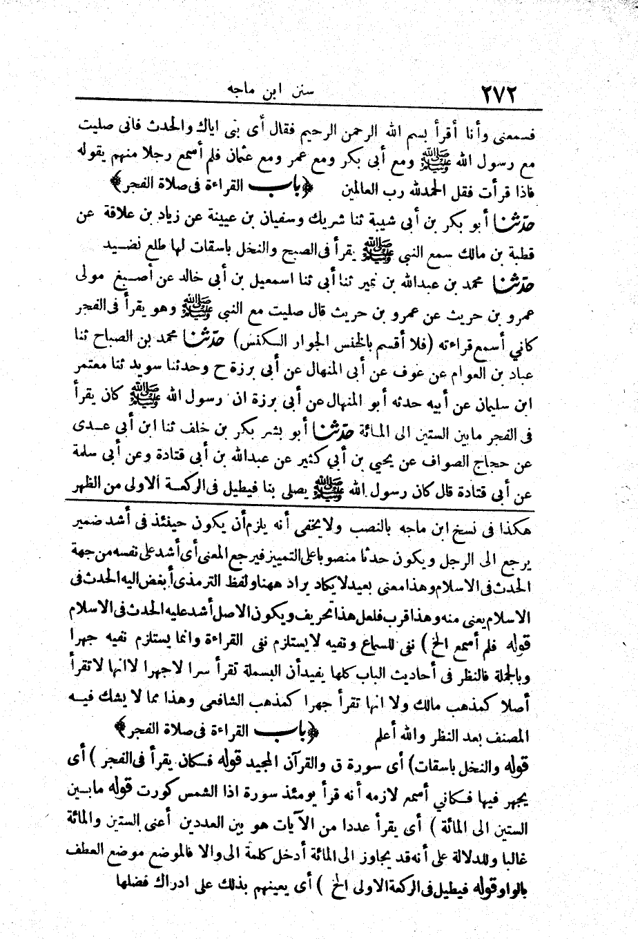 هَكَذَا فِي نُسَخِ ابْنِ مَاجَهْ بِالنَّصْبِ وَلَا يَخْفَى أَنَّهُ يَلْزَمُ أَنْ يَكُونَ حِينَئِذٍ فِي أَشَدِّ ضَمِيرٌ يَرْجِعُ إِلَى الرَّجُلِ وَيَكُونُ حَدَثًا مَنْصُوبًا عَلَى التَّمْيِيزِ فَيَرْجِعُ الْمَعْنَى أَيْ أَشَدُّ عَلَى نَفْسِهِ مِنْ جِهَةِ الْحَدَثِ فِي الْإِسْلَامِ وَهَذَا مَعْنًى بَعِيدٌ لَا يَكَادُ يُرَادُ هَاهُنَا وَلَفْظُ التِّرْمِذِيِّ أَبْغَضُ إِلَيْهِ الْحَدَثَ فِي الْإِسْلَامِ يَعْنِي مِنْهُ وَهَذَا قُرْبٌ فَلَعَلَّ هَذَا تَحْرِيفٌ وَيَكُونُ الْأَصْلُ أَشَدَّ عَلَيْهِ الْحَدَثَ فِي الْإِسْلَامِ قَوْلُهُ (فَلَمْ أَسْمَعْ إِلَخْ) نَفْيٌ لِلسَّمَاعِ وَنَفْيُهُ لَا يَسْتَلْزِمُ نَفْيَ الْقِرَاءَةِ وَإِنَّمَا يَسْتَلْزِمُ نَفْيَهُ جَهْرًا وَبِالْجُمْلَةِ فَالنَّظَرُ فِي أَحَادِيثِ الْبَابِ كُلِّهَا يُفِيدُ أَنَّ الْبَسْمَلَةَ تُقْرَأُ سِرًّا لَا جَهْرًا لَا أَنَّهَا لَا تُقْرَأُ أَصْلًا كَمَذْهَبِ مَالِكٍ وَلَا أَنَّهَا تُقْرَأُ جَهْرًا كَمَذْهَبِ الشَّافِعِيِّ وَهَذَا مِمَّا لَا يَشُكُّ فِيهِ الْمُصَنِّفُ بُعْدَ النَّظَرِ. وَاللَّهُ أَعْلَمُ.