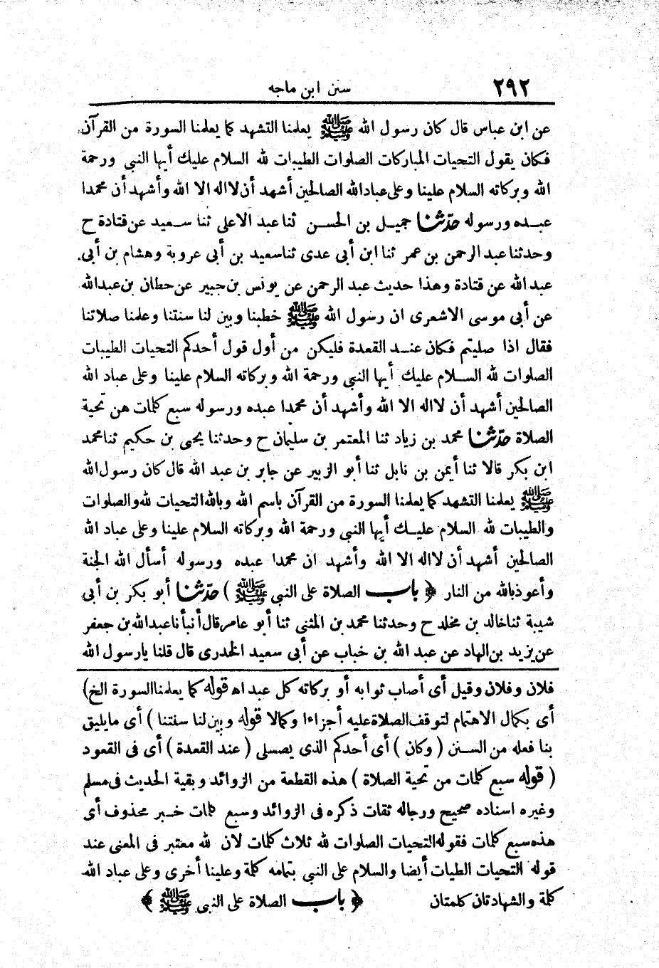 900 - حَدَّثَنَا مُحَمَّدُ بْنُ رُمْحٍ أَنْبَأَنَا اللَّيْثُ بْنُ سَعْدٍ عَنْ أَبِي الزُّبَيْرِ عَنْ سَعِيدِ بْنِ جُبَيْرٍ وَطَاوُسٍ عَنْ ابْنِ عَبَّاسٍ قَالَ «كَانَ رَسُولُ اللَّهِ صَلَّى اللَّهُ عَلَيْهِ وَسَلَّمَ يُعَلِّمُنَا التَّشَهُّدَ كَمَا يُعَلِّمُنَا السُّورَةَ مِنْ الْقُرْآنِ فَكَانَ يَقُولُ التَّحِيَّاتُ الْمُبَارَكَاتُ الصَّلَوَاتُ الطَّيِّبَاتُ لِلَّهِ السَّلَامُ عَلَيْكَ أَيُّهَا النَّبِيُّ وَرَحْمَةُ اللَّهِ وَبَرَكَاتُهُ السَّلَامُ عَلَيْنَا وَعَلَى عِبَادِ اللَّهِ الصَّالِحِينَ أَشْهَدُ أَنْ لَا إِلَهَ إِلَّا اللَّهُ وَأَشْهَدُ أَنَّ مُحَمَّدًا عَبْدُهُ وَرَسُولُهُ»