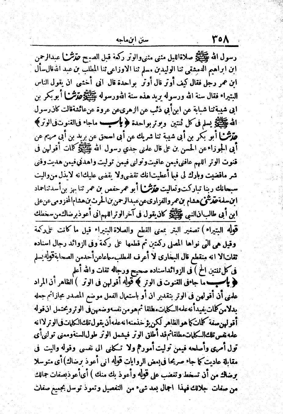 1178 - حَدَّثَنَا أَبُو بَكْرِ بْنُ أَبِي شَيْبَةَ حَدَّثَنَا شَرِيكٌ عَنْ أَبِي إِسْحَقَ عَنْ بُرَيْدِ بْنِ أَبِي مَرْيَمَ عَنْ أَبِي الْحَوْرَاءِ عَنْ الْحَسَنِ بْنِ عَلِيٍّ قَالَ «عَلَّمَنِي جَدِّي رَسُولُ اللَّهِ صَلَّى اللَّهُ عَلَيْهِ وَسَلَّمَ كَلِمَاتٍ أَقُولُهُنَّ فِي قُنُوتِ الْوِتْرِ اللَّهُمَّ عَافِنِي فِيمَنْ عَافَيْتَ وَتَوَلَّنِي فِيمَنْ تَوَلَّيْتَ وَاهْدِنِي فِيمَنْ هَدَيْتَ وَقِنِي شَرَّ مَا قَضَيْتَ وَبَارِكْ لِي فِيمَا أَعْطَيْتَ إِنَّكَ تَقْضِي وَلَا يُقْضَى عَلَيْكَ إِنَّهُ لَا يَذِلُّ مَنْ وَالَيْتَ سُبْحَانَكَ رَبَّنَا تَبَارَكْتَ وَتَعَالَيْتَ»