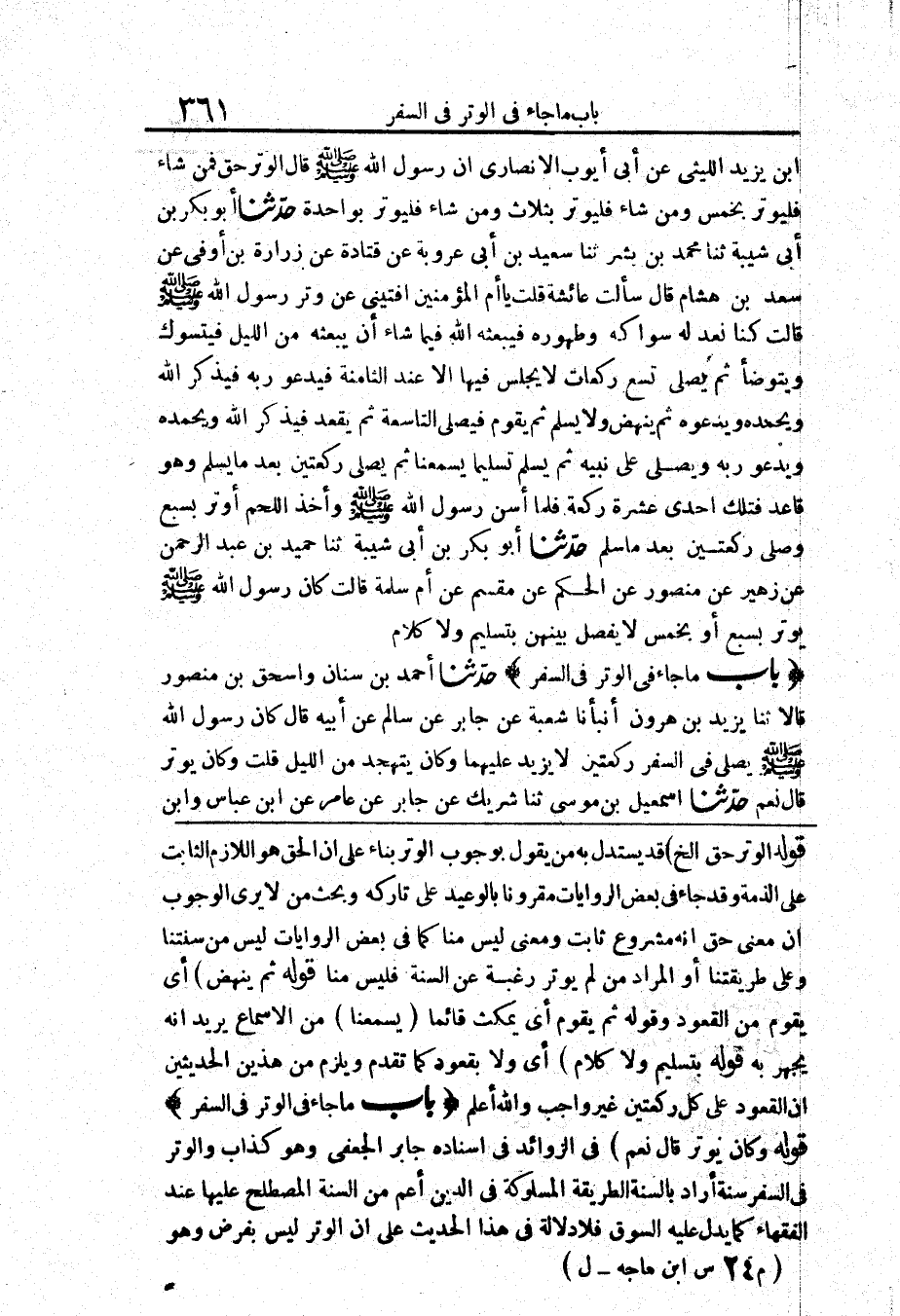 قَوْلُهُ (وَكَانَ يُوتِرُ قَالَ: نَعَمْ) فِي الزَّوَائِدِ فِي إِسْنَادُهُ جَابِرٌ الْجُعْفِيُّ وَهُوَ كَذَّابٌ وَالْوِتْرُ فِي السَّفَرِ سُنَّةٌ أَرَادَ بِالسُّنَّةِ الطَّرِيقَةَ الْمَسْلُوكَةَ فِي الدِّينِ، أَعَمُّ مِنَ السُّنَّةِ الْمُصْطَلِحِ عَلَيْهَا عِنْدَ الْفُقَهَاءِ كَمَا يَدُلُّ عَلَيْهِ السَّوْقُ فَلَا دَلَالَةَ فِي هَذَا الْحَدِيثِ عَلَى أَنَّ الْوِتْرَ لَيْسَ بِفَرْضٍ وَهُوَ