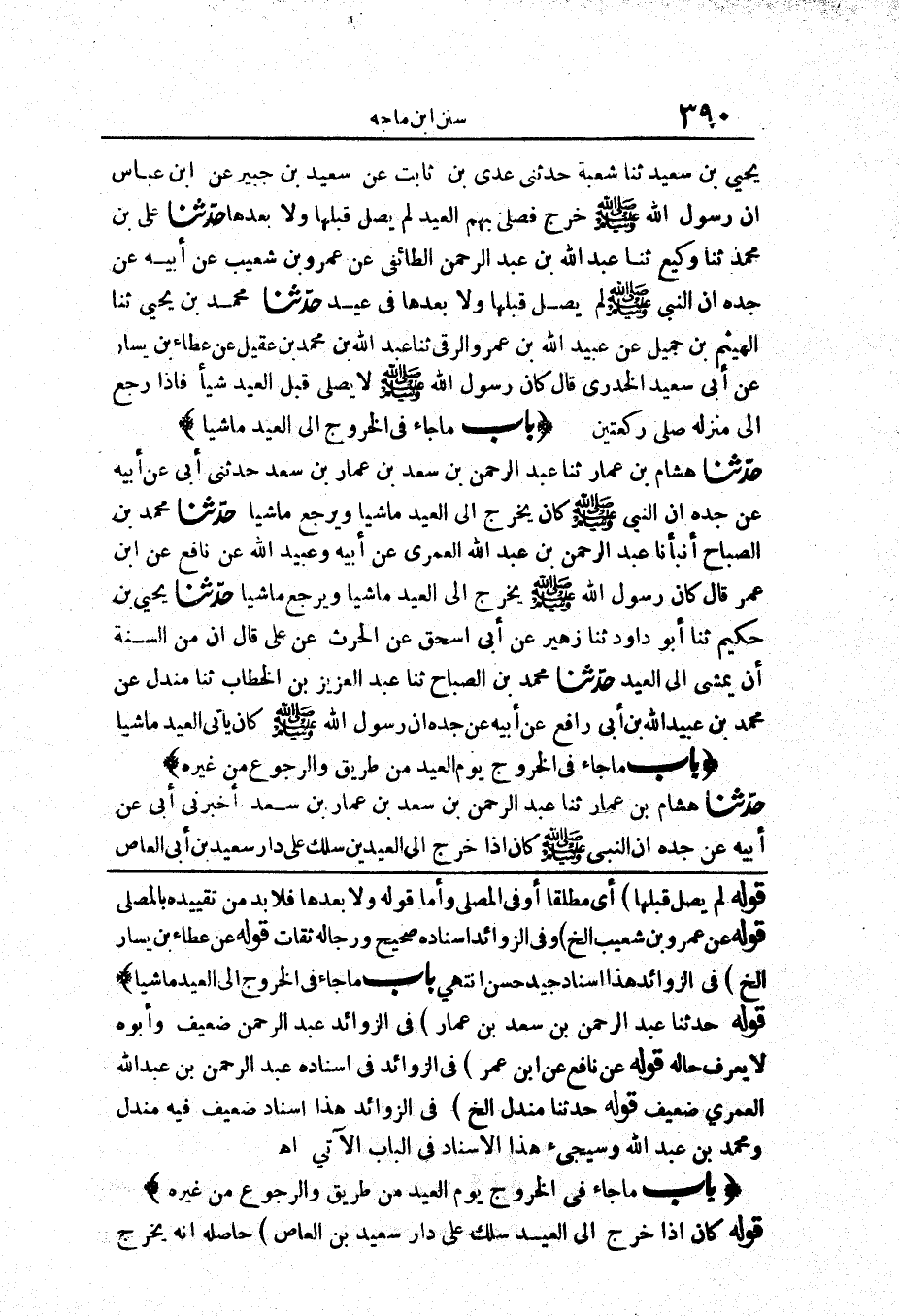 1295 - حَدَّثَنَا مُحَمَّدُ بْنُ الصَّبَّاحِ أَنْبَأَنَا عَبْدُ الرَّحْمَنِ بْنُ عَبْدِ اللَّهِ الْعُمَرِيُّ عَنْ أَبِيهِ وَعُبَيْدُ اللَّهِ عَنْ نَافِعٍ عَنْ ابْنِ عُمَرَ قَالَ «كَانَ رَسُولُ اللَّهِ صَلَّى اللَّهُ عَلَيْهِ وَسَلَّمَ يَخْرُجُ إِلَى الْعِيدِ مَاشِيًا وَيَرْجِعُ مَاشِيًا»