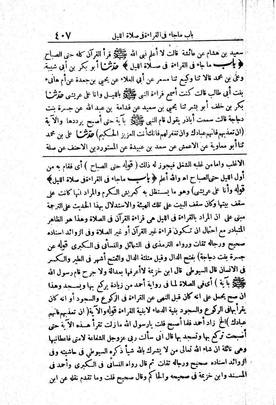 [بَاب مَا جَاءَ فِي الْقِرَاءَةِ فِي صَلَاةِ اللَّيْلِ]