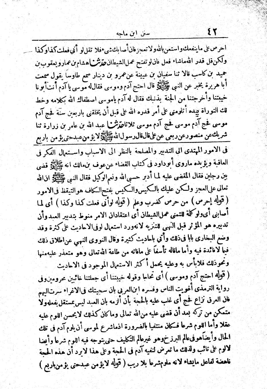 فِي الْأُمُورِ الْمُهْتَدِي إِلَى التَّدْبِيرِ وَالْمَصْلَحَةِ بِالنَّظَرِ إِلَى الْأَسْبَابِ وَاسْتِعْمَالِ الْفِكْرِ فِي الْعَاقِبَةِ وَيُؤَيِّدُهُ مَا رَوَى أَبُو دَاوُدَ فِي كِتَابِ الْقَضَاءِ عَنْ عَوْفِ بْنِ مَالِكٍ «أَنَّهُ ـ صَلَّى اللَّهُ عَلَيْهِ وَسَلَّمَ ـ قَضَى بَيْنَ رَجُلَيْنِ فَقَالَ الْمَقْضِيُّ عَلَيْهِ لَمَّا أَدْبَرَ حَسْبِي اللَّهُ وَنِعْمَ الْوَكِيلُ فَقَالَ النَّبِيُّ ـ صَلَّى اللَّهُ عَلَيْهِ وَسَلَّمَ ـ إِنَّ اللَّهَ تَعَالَى يَلُومُ عَلَى الْعَجْزِ وَلَكِنْ عَلَيْكَ بِالْكَيْسِ» وَالْكَيْسُ بِفَتْحِ الْكَافِ هُوَ التَّيَقُّظُ فِي الْأُمُورِ قَوْلُهُ: (احْرِصْ) مِنْ حَرَصَ كَضَرَبَ وَعَلِمَ قَوْلُهُ: (لَوْ أَنِّي فَعَلْتُ كَذَا وَكَذَا) أَيْ لَمَا أَصَابَنِي أَيْ وَلَوْ كَلِمَةٌ لِلتَّمَنِّي عَمَلُ الشَّيْطَانْ أَيِ اعْتِقَادُ أَنَّ الْأَمْرَ مَنُوطٌ بِتَدْبِيرِ الْعَبْدِ وَأَنَّ تَدْبِيرَهُ هُوَ الْمُؤَثِّرُ قَبْلَ النَّهْيِ لِلتَّنْزِيهِ لِأَنَّهُ وَرَدَ اسْتِعْمَالُ لَوْ فِي الْأَحَادِيثِ عَلَى كَثْرَةِ وَقَدْ وَضَعَ الْبُخَارِيُّ بَابًا فِي ذَلِكَ وَأَتَى بِأَحَادِيثَ كَثِيرَةٍ وَقَالَ النَّوَوِيُّ النَّهْيُ عَنْ إِطْلَاقِ ذَلِكَ فِيمَا لَا فَائِدَةَ فِيهِ وَأَمَّا مَا قَالَهُ تَأَسُّفًا عَلَى مَا فَاتَهُ مِنْ طَاعَةِ اللَّهِ تَعَالَى وَهُوَ مُتَعَذِّرٌ عَلَيْهِ مِنْهَا وَنَحْوُ ذَلِكَ فَلَا بَأْسَ بِهِ وَعَلَيْهِ يُحْمَلُ أَكْثَرُ الِاسْتِعْمَالِ الْمَوْجُودِ فِي الْأَحَادِيثِ.