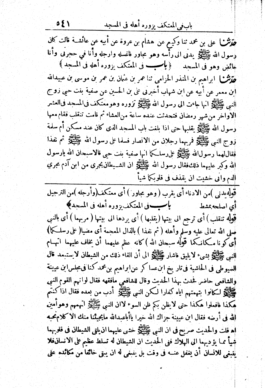 [بَاب فِي الْمُعْتَكِفِ يَزُورُهُ أَهْلُهُ فِي الْمَسْجِدِ]