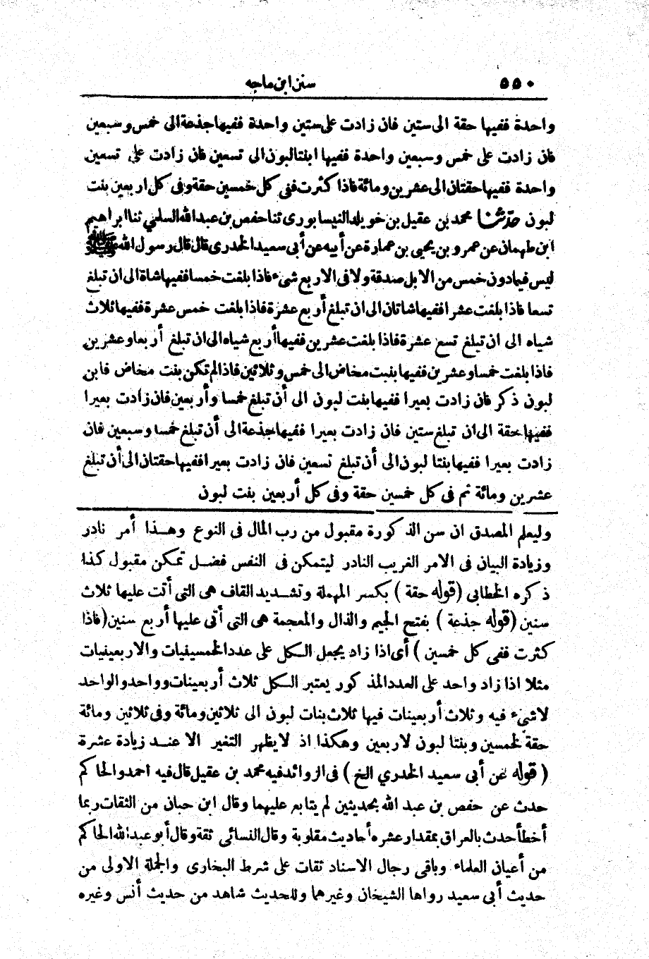 1799 - حَدَّثَنَا مُحَمَّدُ بْنُ عَقِيلِ بْنِ خُوَيْلِدٍ النَّيْسَابُورِيُّ حَدَّثَنَا حَفْصُ بْنُ عَبْدِ اللَّهِ السُّلَمِيُّ حَدَّثَنَا إِبْرَاهِيمُ بْنُ طَهْمَانَ عَنْ عَمْرِو بْنِ يَحْيَى بْنِ عُمَارَةَ عَنْ أَبِيهِ عَنْ أَبِي سَعِيدٍ الْخُدْرِيِّ قَالَ «قَالَ رَسُولُ اللَّهِ صَلَّى اللَّهُ عَلَيْهِ وَسَلَّمَ لَيْسَ فِيمَا دُونَ خَمْسٍ مِنْ الْإِبِلِ صَدَقَةٌ وَلَا فِي الْأَرْبَعِ شَيْءٌ فَإِذَا بَلَغَتْ خَمْسًا فَفِيهَا شَاةٌ إِلَى أَنْ تَبْلُغَ تِسْعًا فَإِذَا بَلَغَتْ عَشْرًا فَفِيهَا شَاتَانِ إِلَى أَنْ تَبْلُغَ أَرْبَعَ عَشْرَةَ فَإِذَا بَلَغَتْ خَمْسَ عَشْرَةَ فَفِيهَا ثَلَاثُ شِيَاهٍ إِلَى أَنْ تَبْلُغَ تِسْعَ عَشْرَةَ فَإِذَا بَلَغَتْ عِشْرِينَ فَفِيهَا أَرْبَعُ شِيَاهٍ إِلَى أَنْ تَبْلُغَ أَرْبَعًا وَعِشْرِينَ فَإِذَا بَلَغَتْ خَمْسًا وَعِشْرِينَ فَفِيهَا بِنْتُ مَخَاضٍ إِلَى خَمْسٍ وَثَلَاثِينَ فَإِذَا لَمْ تَكُنْ بِنْتُ مَخَاضٍ فَابْنُ لَبُونٍ ذَكَرٌ فَإِنْ زَادَتْ بَعِيرًا فَفِيهَا بِنْت لَبُونٍ إِلَى أَنْ تَبْلُغَ خَمْسًا وَأَرْبَعِينَ فَإِنْ زَادَتْ بَعِيرًا فَفِيهَا حِقَّةٌ إِلَى أَنْ تَبْلُغَ سِتِّينَ فَإِنْ زَادَتْ بَعِيرًا فَفِيهَا جَذَعَةٌ إِلَى أَنْ تَبْلُغَ خَمْسًا وَسَبْعِينَ فَإِنْ زَادَتْ بَعِيرًا فَفِيهَا بِنْتَا لَبُونٍ إِلَى أَنْ تَبْلُغَ تِسْعِينَ فَإِنْ زَادَتْ بَعِيرًا فَفِيهَا حِقَّتَانِ إِلَى أَنْ تَبْلُغَ عِشْرِينَ وَمِائَةً ثُمَّ فِي كُلِّ خَمْسِينَ حِقَّةٌ وَفِي كُلِّ أَرْبَعِينَ بِنْتُ لَبُونٍ»