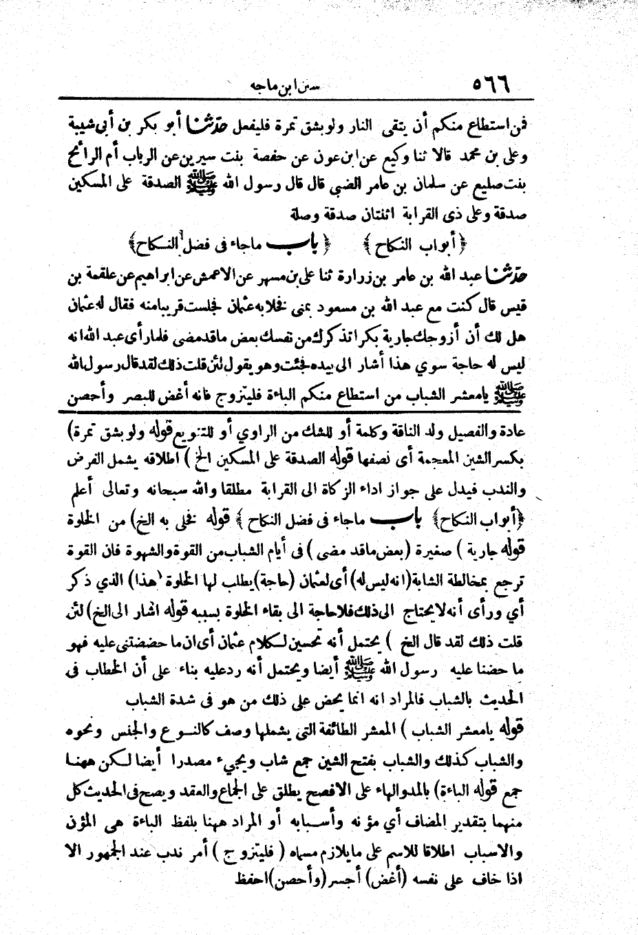 قَوْلُهُ: (فَخَلَا بِهِ إِلَخْ) مِنَ الْخَلْوَةِ قَوْلُهُ: (جَارِيَةً) صَغِيرَةً (بَعْضَ مَا قَدْ مَضَى) فِي أَيَّامِ الشَّبَابِ مِنَ الْقُوَّةِ وَالشَّهْوَةِ فَإِنَّ الْقُوَّةَ تَرْجِعُ بِمُخَالَطَةِ الشَّابَّةِ (أَنَّهُ لَيْسَ لَهُ) أَيْ لِعُثْمَانَ (حَاجَةٌ) يَطْلُبُ لَهَا الْخَلْوَةَ (هَذَا) الَّذِي ذَكَرَ أَيْ وَرَأَى أَنَّهُ لَا يَحْتَاجُ إِلَى ذَلِكَ فَلَا حَاجَةَ إِلَى بَقَاءِ الْخَلْوَةِ بِسَبَبِهِ قَوْلُهُ: أَشَارَ إِلَيَّ إِلَخْ (لَئِنْ قُلْتُ ذَلِكَ لَقَدْ قَالَ إِلَخْ) يَحْتَمِلُ أَنَّهُ تَحْسِينٌ لِكَلَامِ عُثْمَانَ أَيْ أَنَّ مَا حَضَضْتَنِي عَلَيْهِ فَهُوَ مَا حَضَّنَا عَلَيْهِ رَسُولُ اللَّهِ ـ صَلَّى اللَّهُ عَلَيْهِ وَسَلَّمَ ـ أَيْضًا وَيَحْتَمِلُ أَنَّهُ رَدَّ عَلَيْهِ بِنَاءً عَلَى أَنَّ الْخِطَابَ فِي الْحَدِيثِ بِالشَّبَابِ فَالْمُرَادُ أَنَّهُ إِنَّمَا يَحُضُّ عَلَى ذَلِكَ مَنْ هُوَ فِي شِدَّةِ الشَّبَابِ قَوْلُهُ: (يَا مَعْشَرَ الشَّبَابِ) الْمَعْشَرُ الطَّائِفَةُ الَّتِي يَشْمَلُهَا وَصْفٌ كَالنَّوْعِ وَالْجِنْسِ وَنَحْوِهِ وَالشَّبَابُ كَذَلِكَ وَالشَّبَابُ بِفَتْحِ الشِّينِ جَمْعُ شَابٍّ وَيَجِيءُ مَصْدَرًا أَيْضًا لَكِنْ هَاهُنَا جَمْعٌ قَوْلُهُ: (الْبَاءَةَ) بِالْمَدِّ وَالْهَاءِ عَلَى الْأَفْصَحِ يُطْلَقُ عَلَى الْجِمَاعِ وَالْعَقْدِ وَيَصِحُّ فِي الْحَدِيثِ كُلٌّ مِنْهُمَا بِتَقْدِيرِ الْمُضَافِ أَيْ مُؤَنَهُ وَأَسْبَابَهُ أَوِ الْمُرَادُ هَاهُنَا بِلَفْظِ الْبَاءَةِ هِيَ الْمُؤَنُ وَالْأَسْبَابُ إِطْلَاقًا لِلِاسْمِ عَلَى مَا يُلَازِمُ مُسَمَّاهُ (فَلْيَتَزَوَّجْ) أَمْرُ نَدْبٍ عِنْدَ الْجُمْهُورِ إِلَّا إِذَا خَافَ عَلَى نَفْسِهِ (أَغَضُّ) أَجَسْرُ (وَأَحْصَنُ) أَحْفَظُ