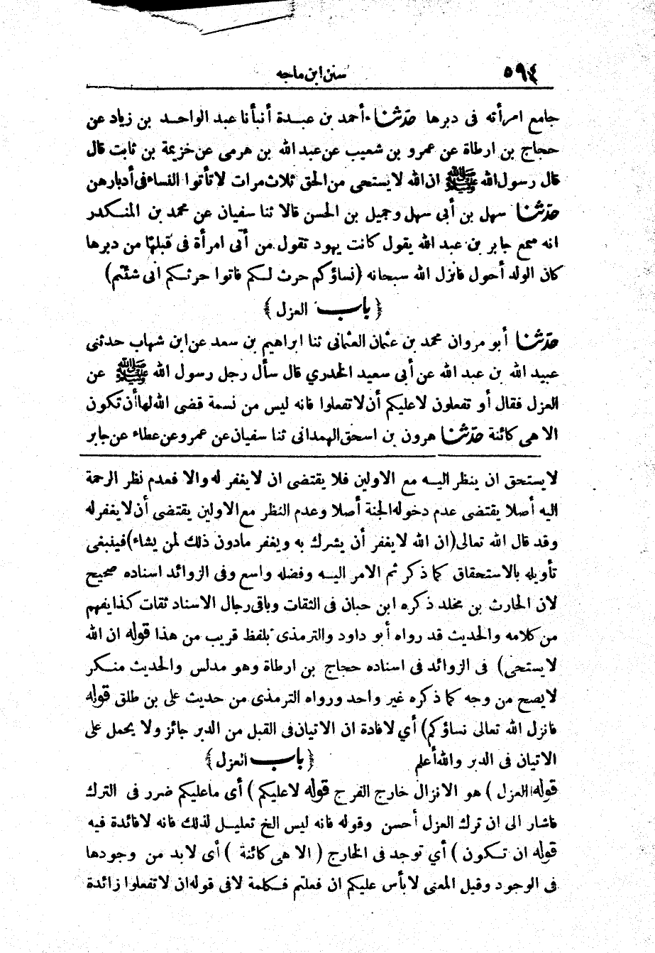 1924 - حَدَّثَنَا أَحْمَدُ بْنُ عَبْدَةَ أَنْبَأَنَا عَبْدُ الْوَاحِدِ بْنُ زِيَادٍ عَنْ حَجَّاجِ بْنِ أَرْطَاةَ عَنْ عَمْرِو بْنِ شُعَيْبٍ عَنْ عَبْدِ اللَّهِ بْنِ هَرَمِيٍّ عَنْ خُزَيْمَةَ بْنِ ثَابِتٍ قَالَ «قَالَ رَسُولُ اللَّهِ صَلَّى اللَّهُ عَلَيْهِ وَسَلَّمَ إِنَّ اللَّهَ لَا يَسْتَحْيِي مِنْ الْحَقِّ ثَلَاثَ مَرَّاتٍ لَا تَأْتُوا النِّسَاءَ فِي أَدْبَارِهِنَّ»
