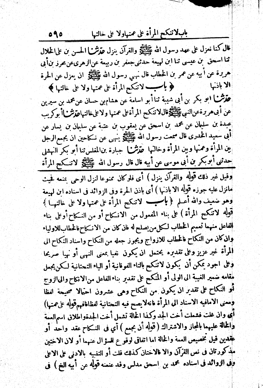 [بَاب لَا تُنْكَحُ الْمَرْأَةُ عَلَى عَمَّتِهَا وَلَا عَلَى خَالَتِهَا]
