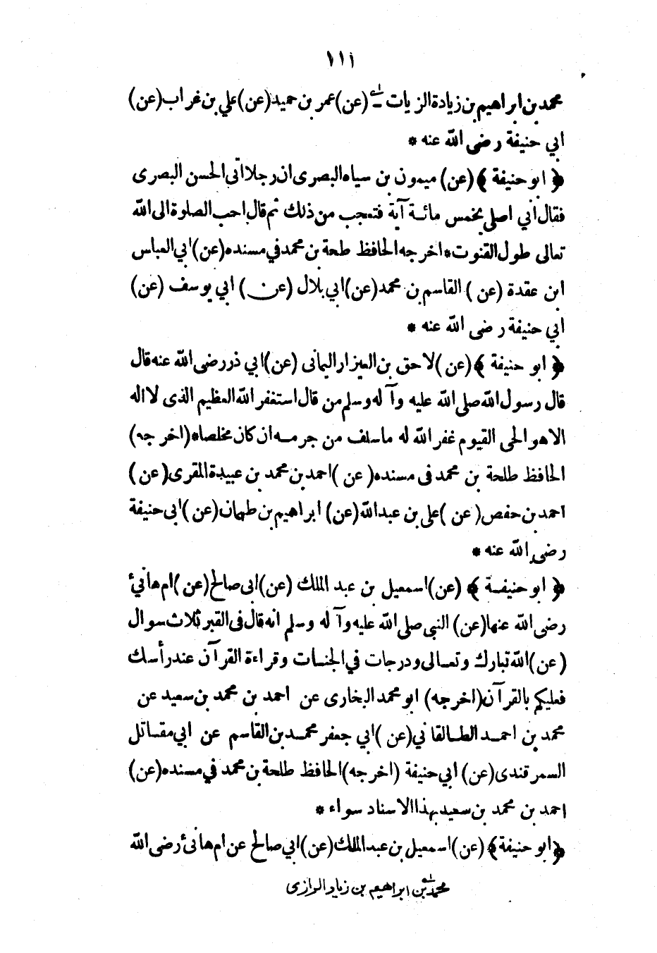 محمد بن إبراهيم بن زيادة الزيات (عن) عمر بن حميد (عن) علي بن غراب (عن) أبي حنيفة رضي الله عنه*