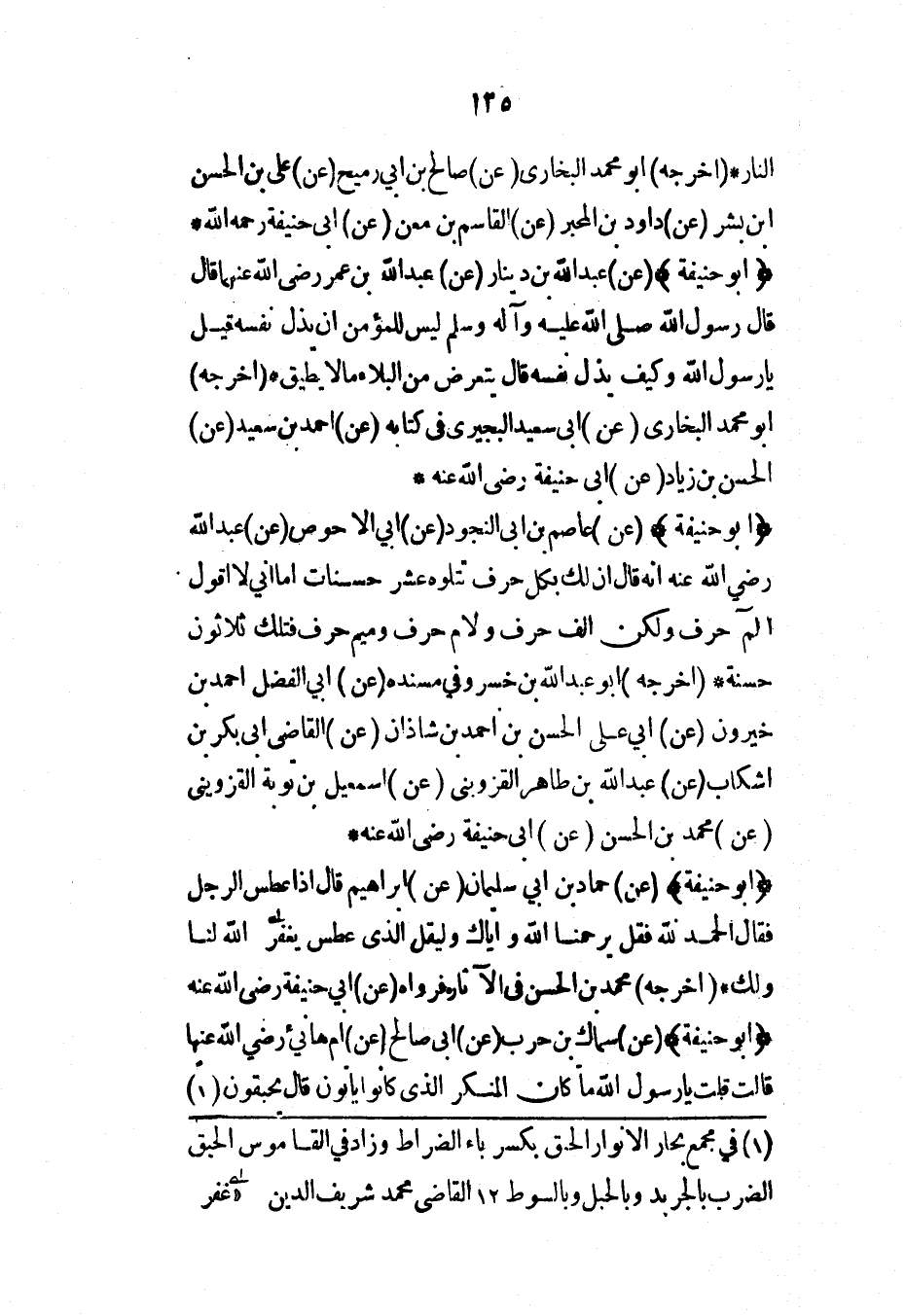 النار* (أخرجه) أبو محمد البخاري (عن) صالح بن أبي رميح (عن) علي بن الحسن ابن بشر (عن) داود بن المحبر (عن) القاسم بن معن (عن) أبي حنيفة رحمه الله*
