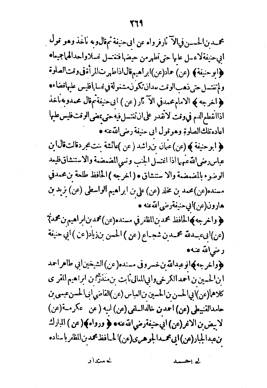 (وأخرجه) الحافظ محمد بن المظفر في مسنده (عن) محمد بن إبراهيم بن محمد (عن) أبي عبد الله محمد بن شجاع (عن) الحسن بن زياد (عن) أبي حنيفة رضي الله عنه*
