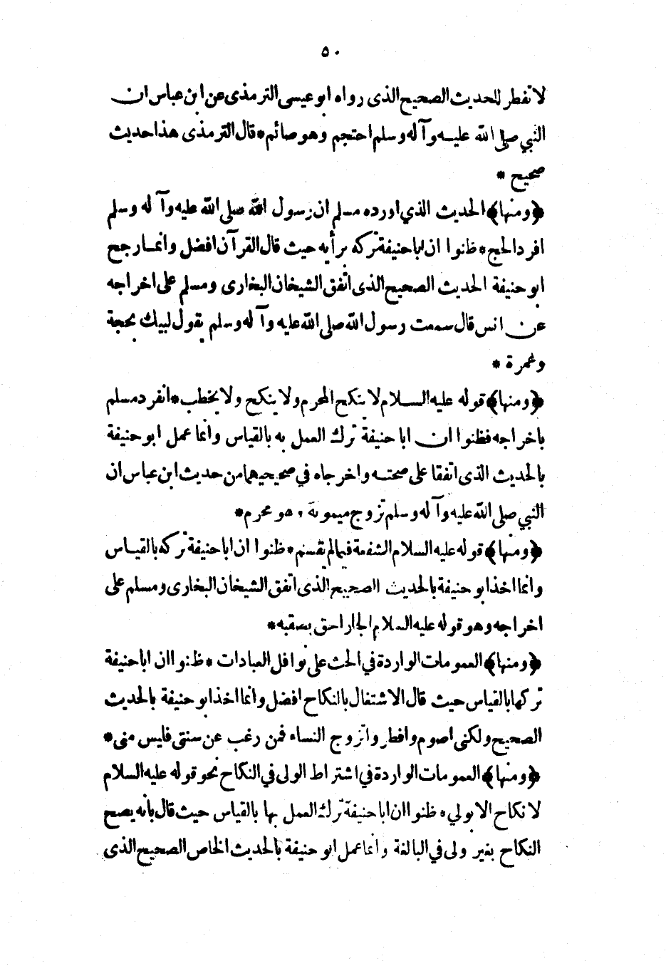 (ومنها) الحديث الذي أورده مسلم أن رسول الله صلى الله عليه وآله وسلم أفرد الحج* ظنوا أن أبا حنيفة تركه برأيه حيث قال القرآن أفضل وإنما رجح أبو حنيفة الحديث الصحيح الذي اتفق الشيخان البخاري ومسلم على إخراجه عن أنس قال سمعت رسول الله صلى الله عليه وآله وسلم يقول لبيك بحجة وعمرة*