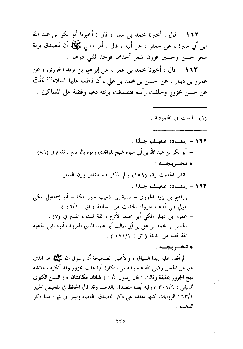 انظر الحديث رقم (159) ولم يذكر فيه مقدار وزن الشعر.