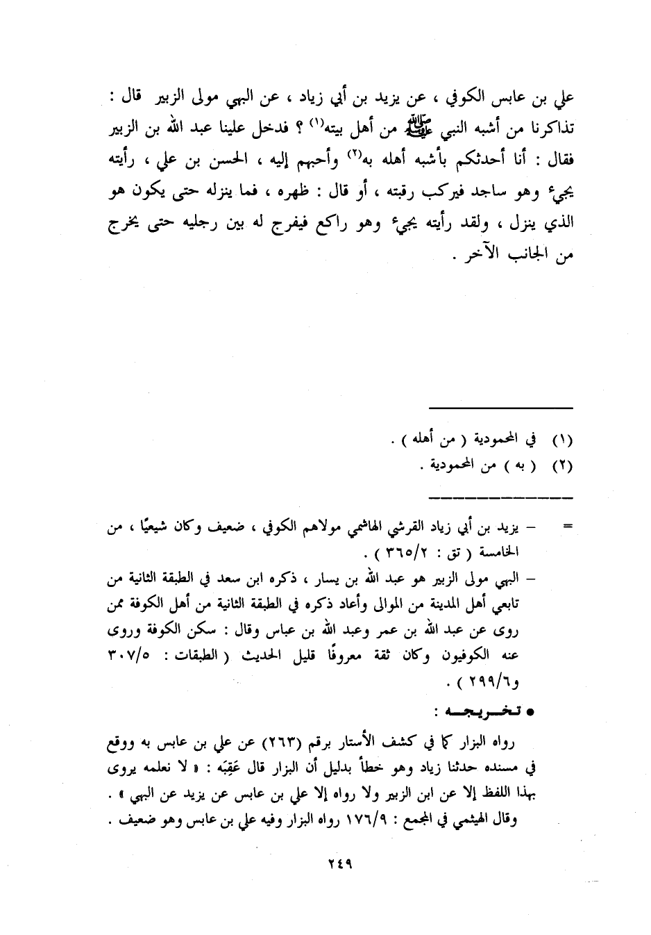 علي بن عابس الكوفي. عن يزيد بن أبي زياد. عن البهي مولى الزبير قال: