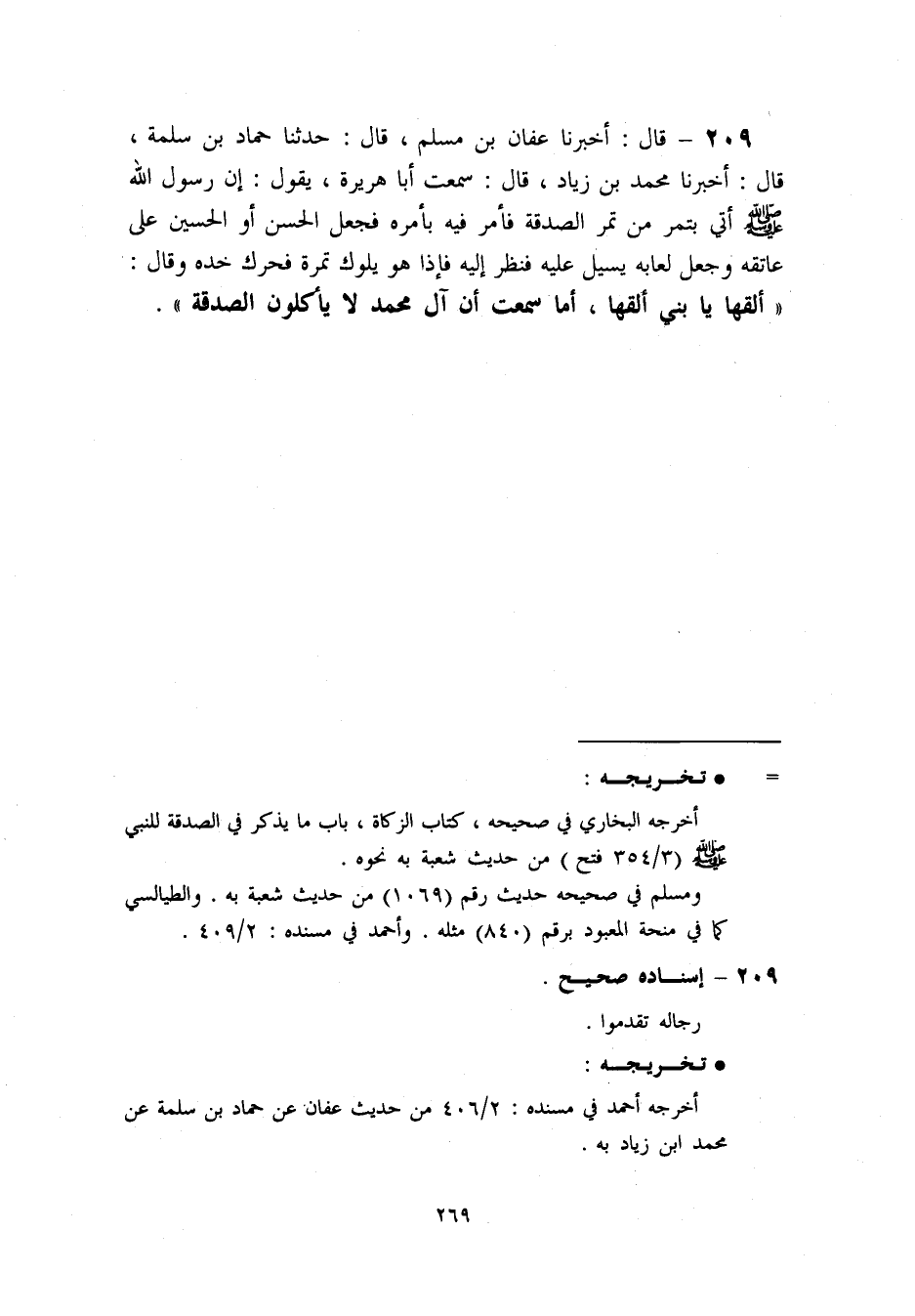 209- قال: أخبرنا عفان بن مسلم. قال: حدثنا حماد بن سلمة.