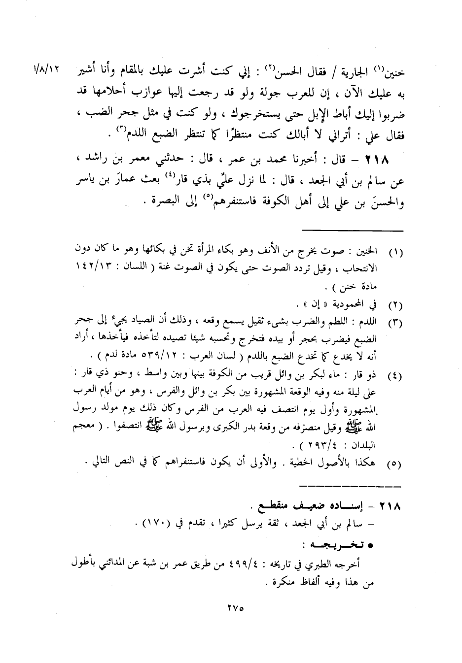 218- قال: أخبرنا محمد بن عمر. قال: حدثني معمر بن راشد.