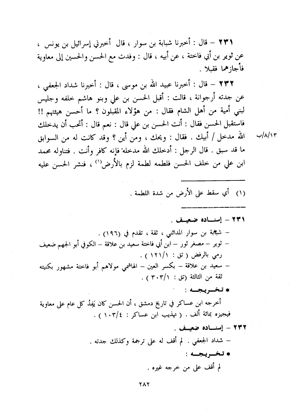 232- قال: أخبرنا عبيد الله بن موسى. قال: أخبرنا شداد الجعفي.