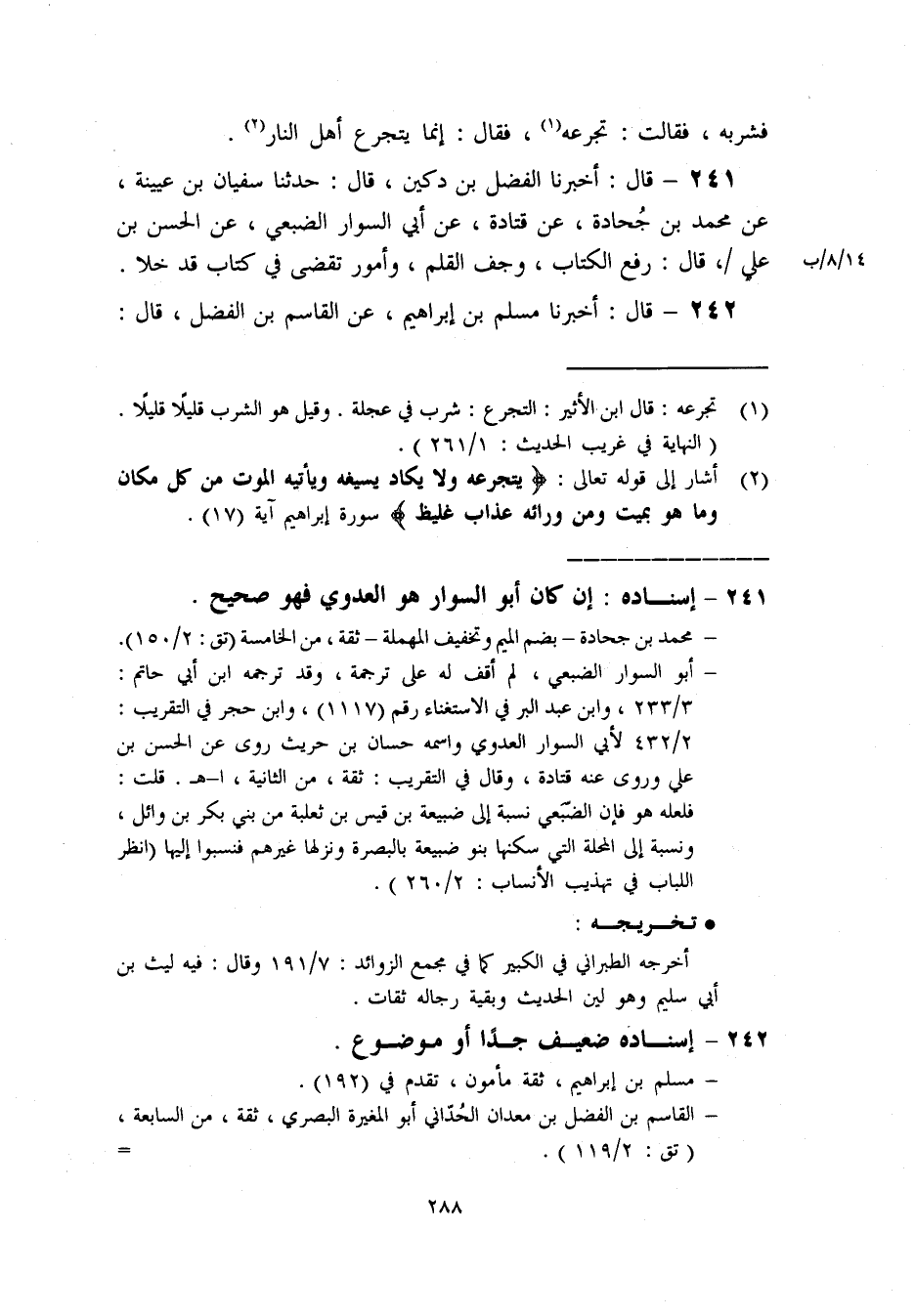 241- قال: أخبرنا الفضل بن دكين. قال: حدثنا سفيان بن عيينة.