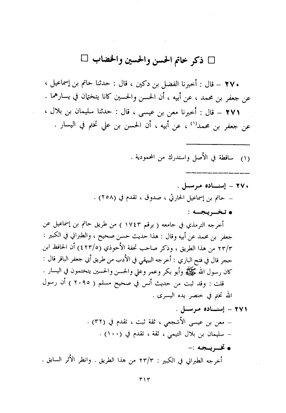 270- قال: أخبرنا الفضل بن دكين. قال: حدثنا حاتم بن إسماعيل.