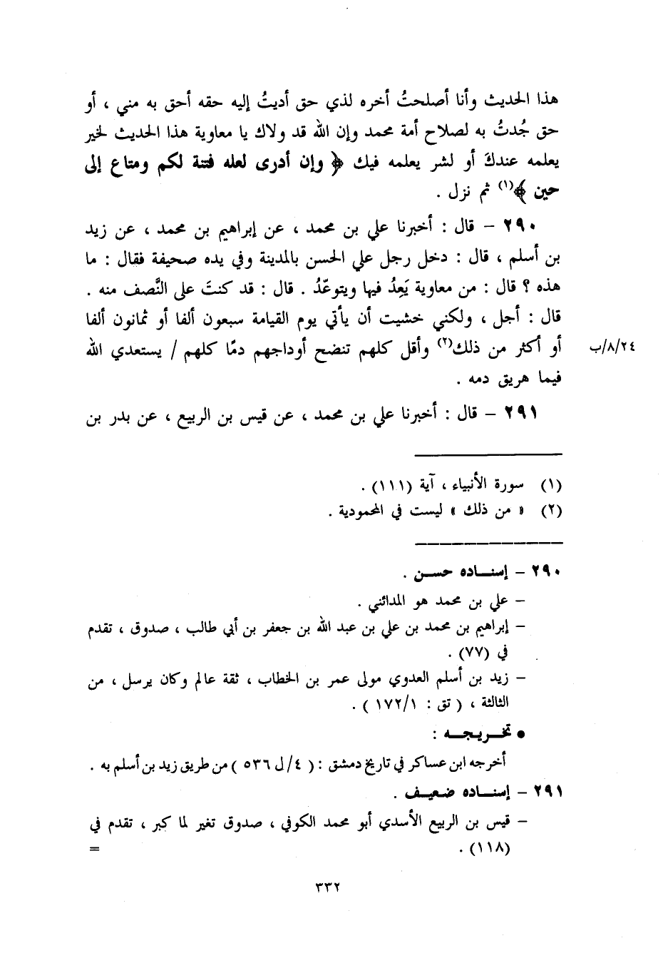 (1) سورة الأنبياء. آية (111) .