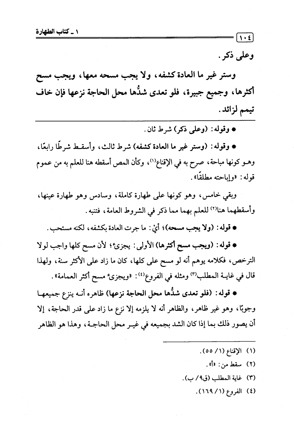 * وقوله: (وستر غير ما العادة كشفه) شرط ثالث، وأسقط شرطًا رابعًا، وهو كونها مباحة، صرح به في الإقناع (¬1)، وكأن المص أسقطه هنا للعلم به من عموم قوله: "وإباحته مطلقًا".