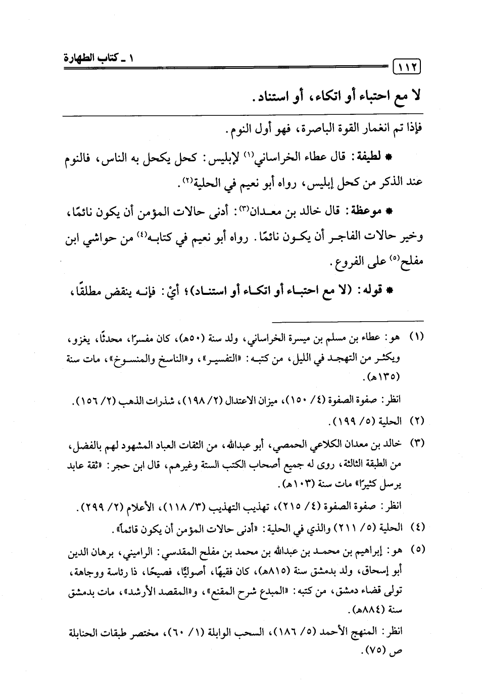 (¬4) الحلية (5/ 211) والذي في الحلية: "أدنى حالات المؤمن أن يكون قائمًا".