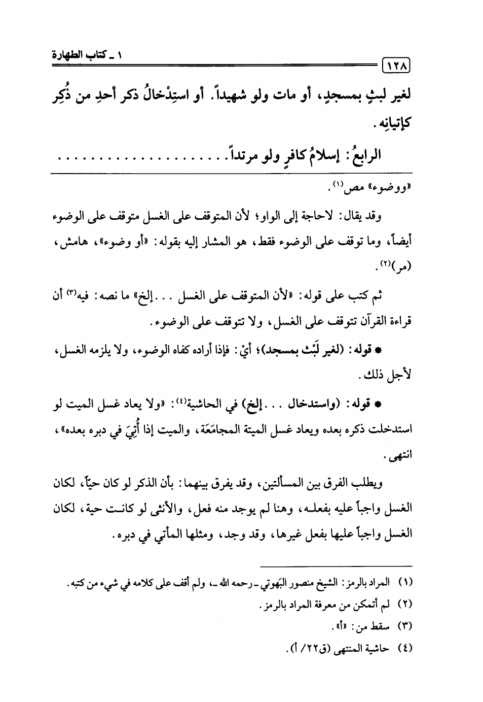 (¬1) المراد بالرمز: الشيخ منصور البَهوتي -رحمه اللَّه-، ولم أقف على كلامه في شيء من كتبه.
