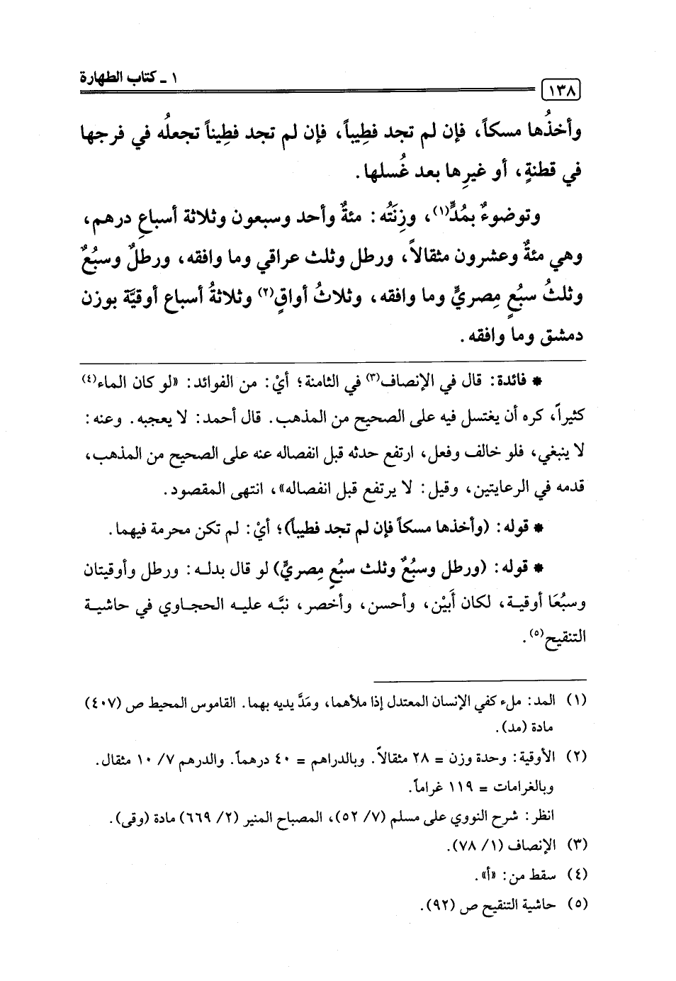 (¬2) الأوقية: وحدة وزن = 28 مثقالًا. وبالدراهم = 40 درهمًا. والدرهم 7/ 10 مثقال. وبالغرامات = 119 غرامًا.