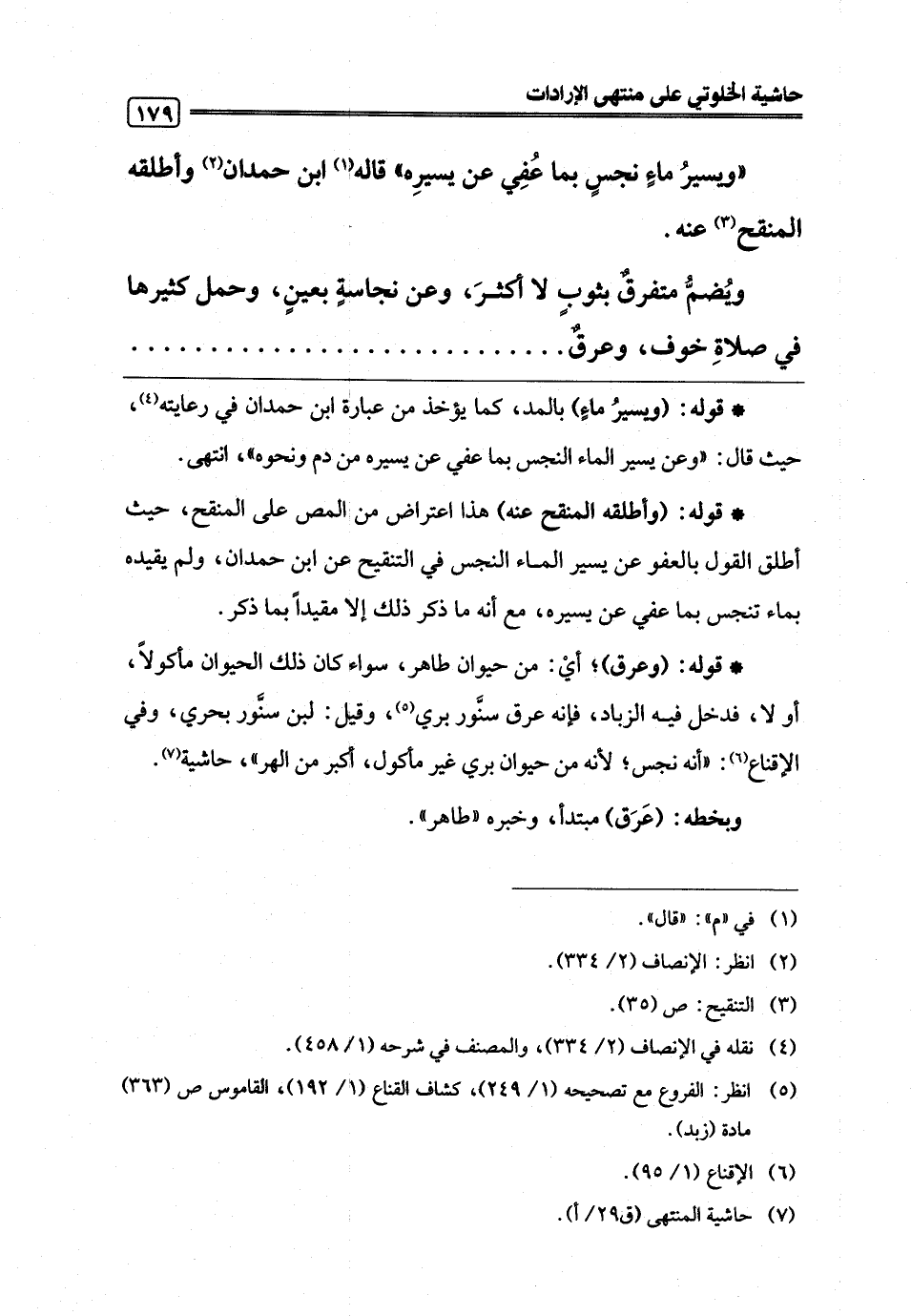 (¬7) حاشية المنتهى (ق 29/ أ).
