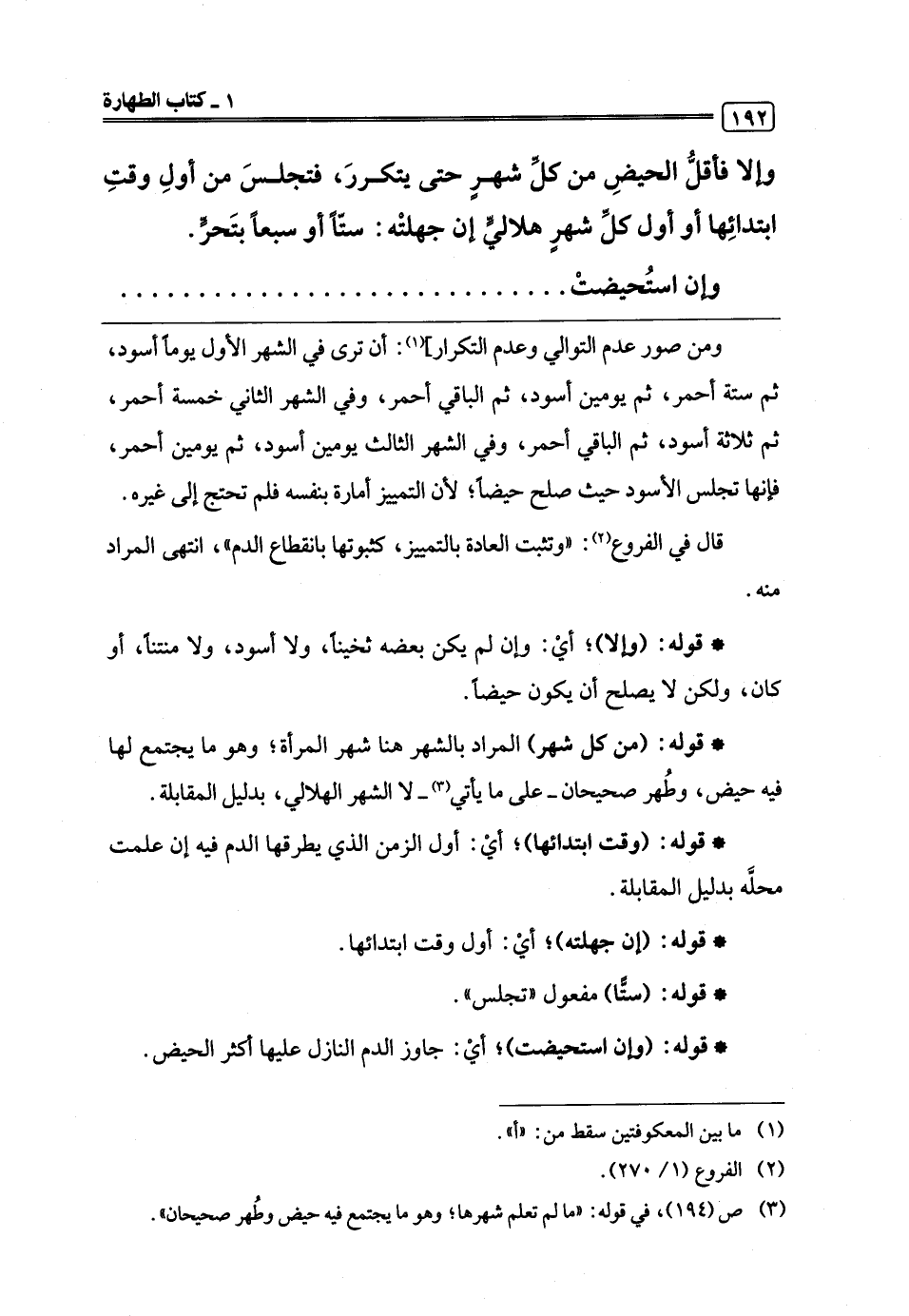 (¬3) ص (194)، في قوله: "ما لم تعلم شهرها؛ وهو ما يجتمع فيه حيض وطُهر صحيحان".